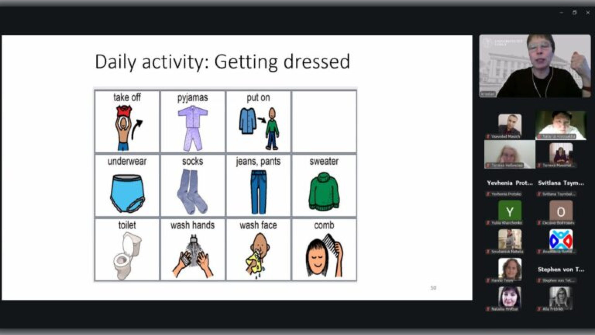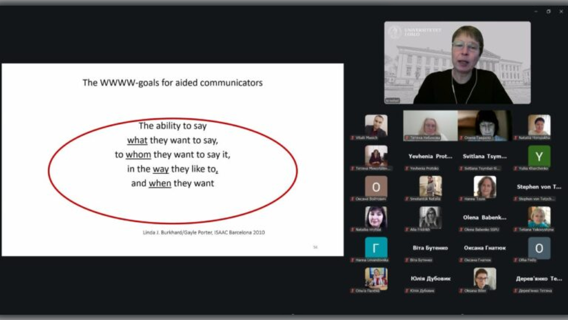 Професор Стівен фон Тетчнер та професор Крістін Штадсклейв наголосили на важливості скоординованої співпраці між усіма зацікавленими сторонами в навчальному процесі. Учасники розглянули як життєво-орієнтовані, так і проблемно-орієнтовані підходи та обговорили, як структуровані, багатоетапні плани абілітації допомагають визначити чіткі короткострокові та довгострокові цілі. Особливу увагу було приділено створенню ефективного комунікаційного середовища та вибору символів ААК, адаптованих до потреб кожного учня.
