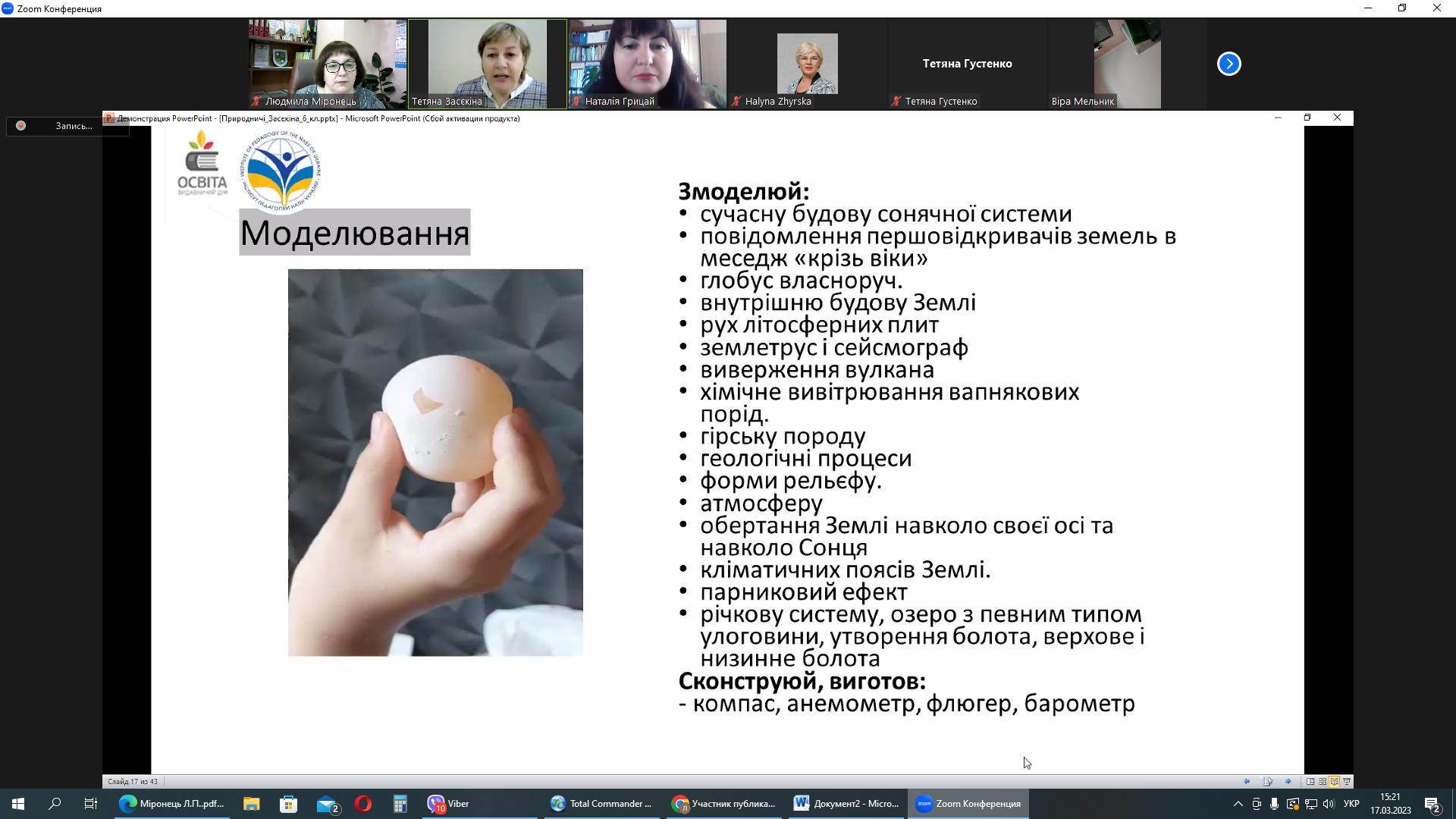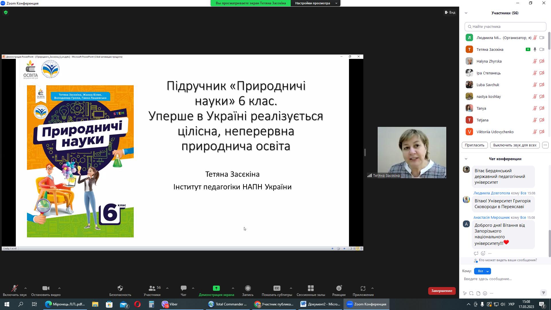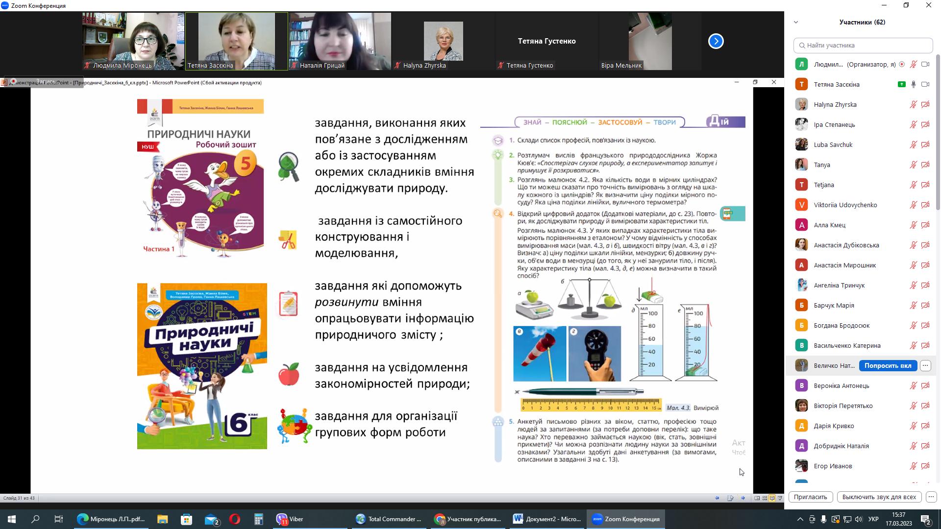 17 березня 2023 року серію вебінарів із авторами модельних програм та підручників для НУШ природничої освітньої галузі продовжила зустріч із Тетяною Миколаївною Засєкіною, заступником директора з науково-експериментальної роботи Інституту педагогіки НАПН України, головним науковим співробітником відділу STEM-освіти, д.п.н., старшим науковим співробітником.