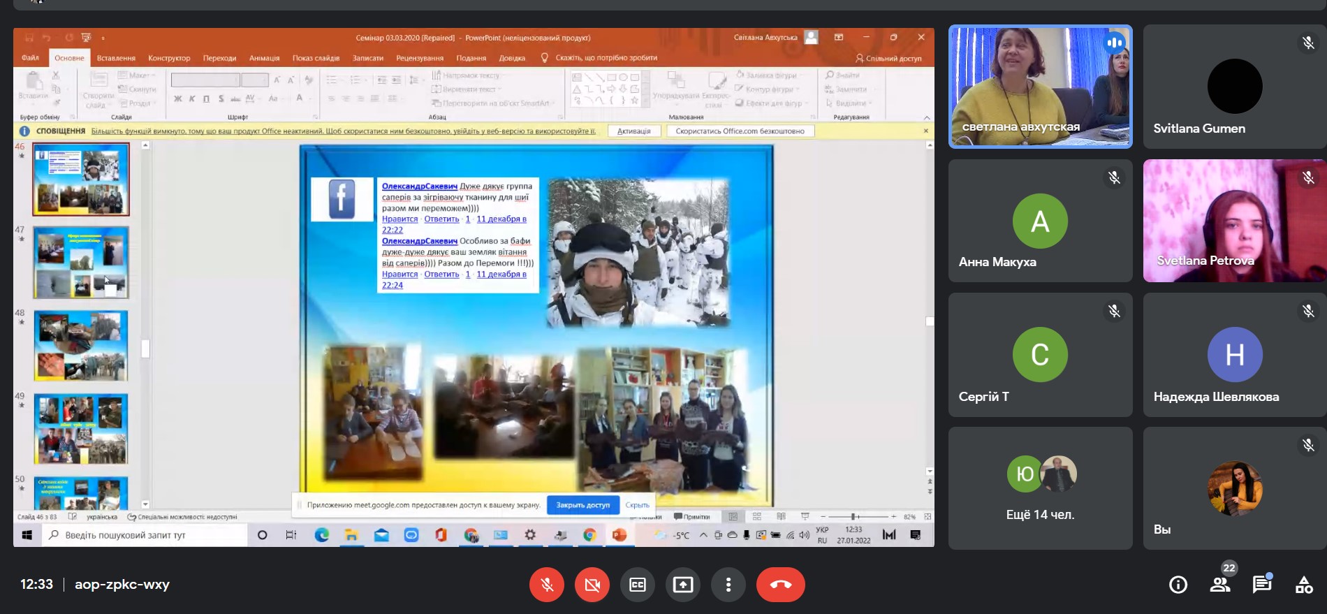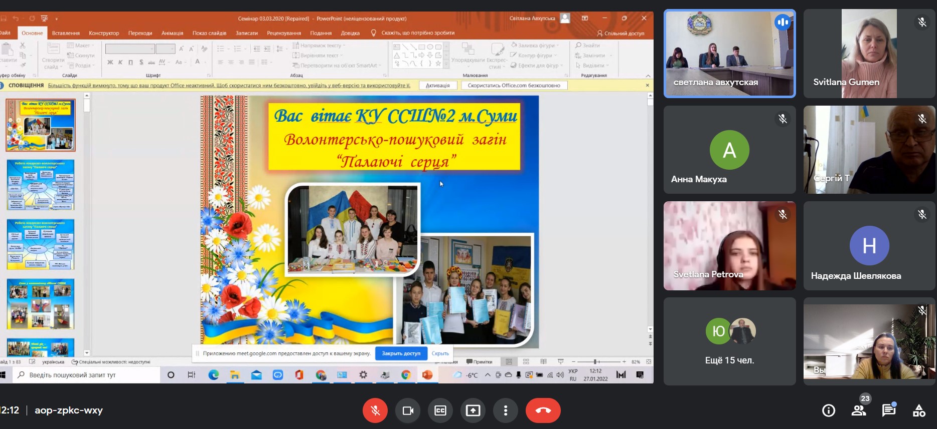 27 січня 2022 року кафедрою історії України СумДПУ імені А.С. Макаренка організовано круглий стіл «Сьогодення та історико-культурна спадщина Сумщини», який вже традиційно проводиться кандидатом педагогічних наук, доцентом АВХУТСЬКОЮ СВІТЛАНОЮ ОЛЕКСАНДРІВНОЮ.