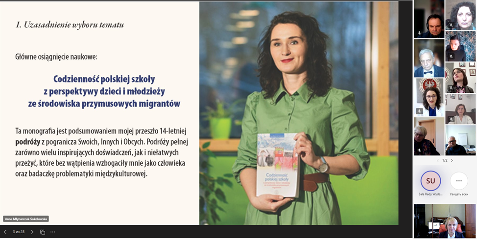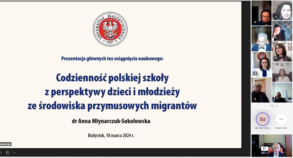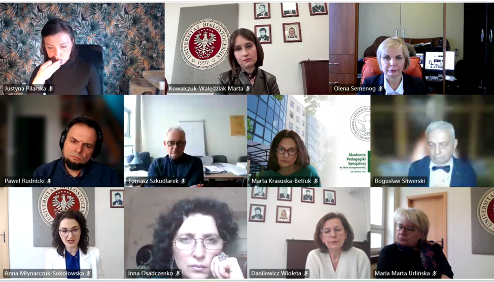 У рамках співпраці із відділом науки Білостоцького університетуWydział Nauk o Edukacji Uniwersytetu w Białymstoku (Польща) проф. Семеног О.М. спільно з проф. І.Осадченко, візитовим професором Університету в Білостоку (Польща) мала честь бути запрошеною на онлайн-захист докторської дисертації (у польському варіанті – ґабілітації) доктора Anna Młynarczuk-Sokołowska.