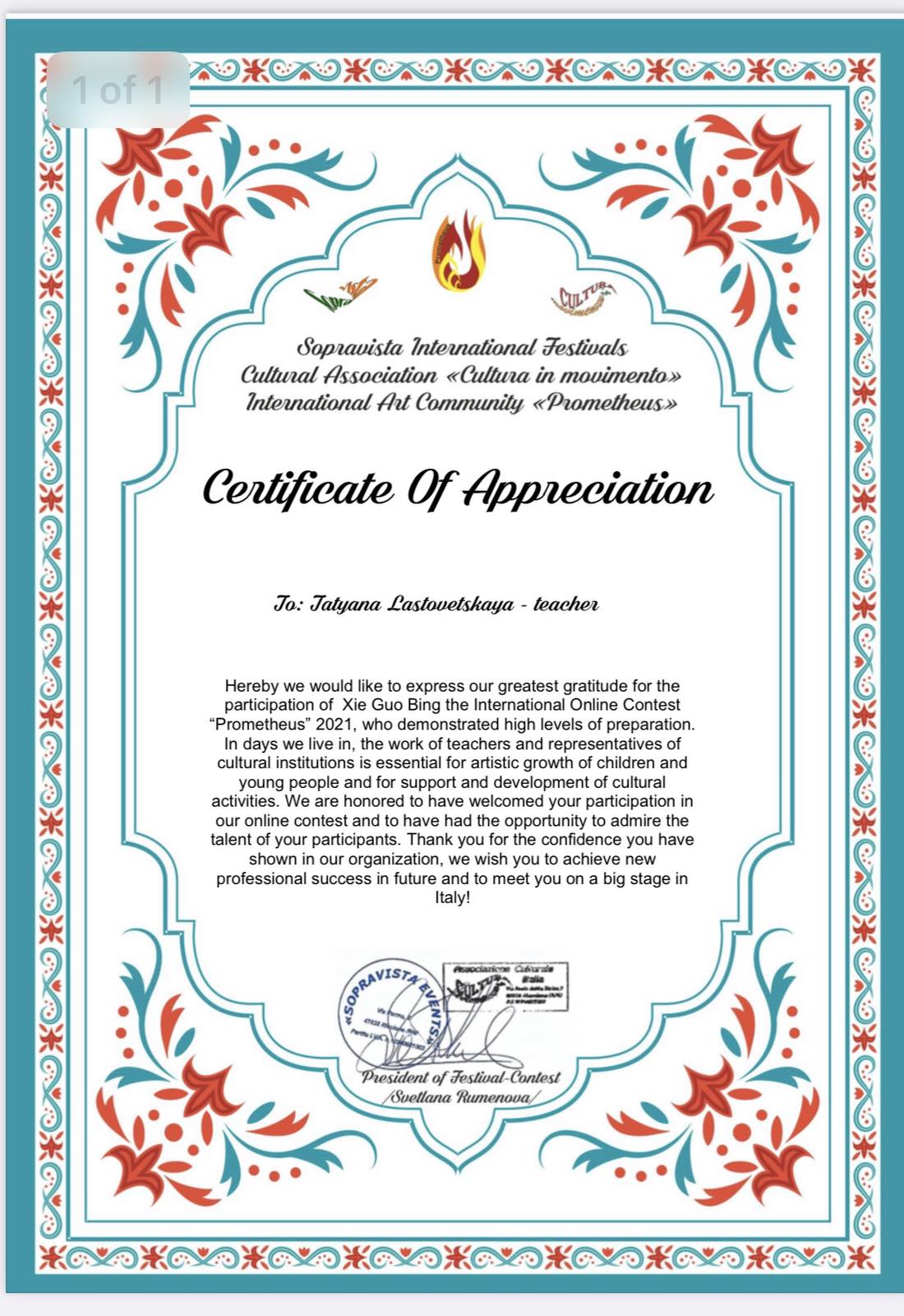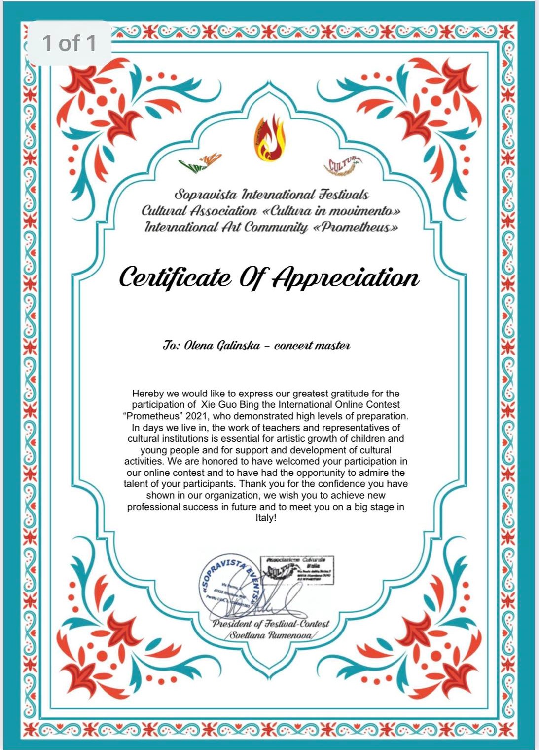 Шановні колеги, у нас приємна подія! На міжнародному онлайн-конкурсі Прометей (Італія) у різних вікових категоріях успішно виступили студенти Навчально-наукового інституту культури і мистецтв з творами українських, італійських та китайських композиторів.