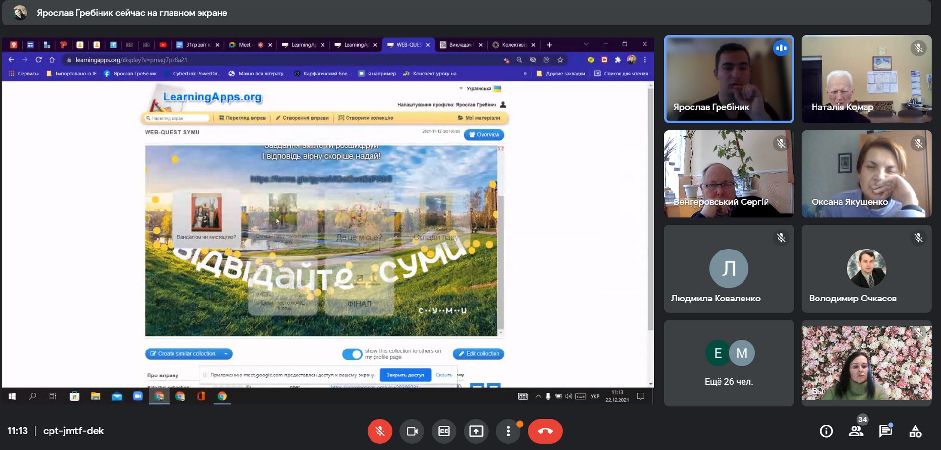 22 грудня 2021 відбулося спільне засідання Ресурсного Центру професійного розвитку вчителя історії та громадянської освіти СумДПУ імені А.С. Макаренка та викладачів обласного методичного об’єднання соціальних дисциплін і правових знань закладів фахової передвищої освіти Сумської області.
