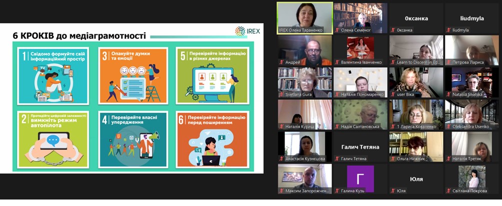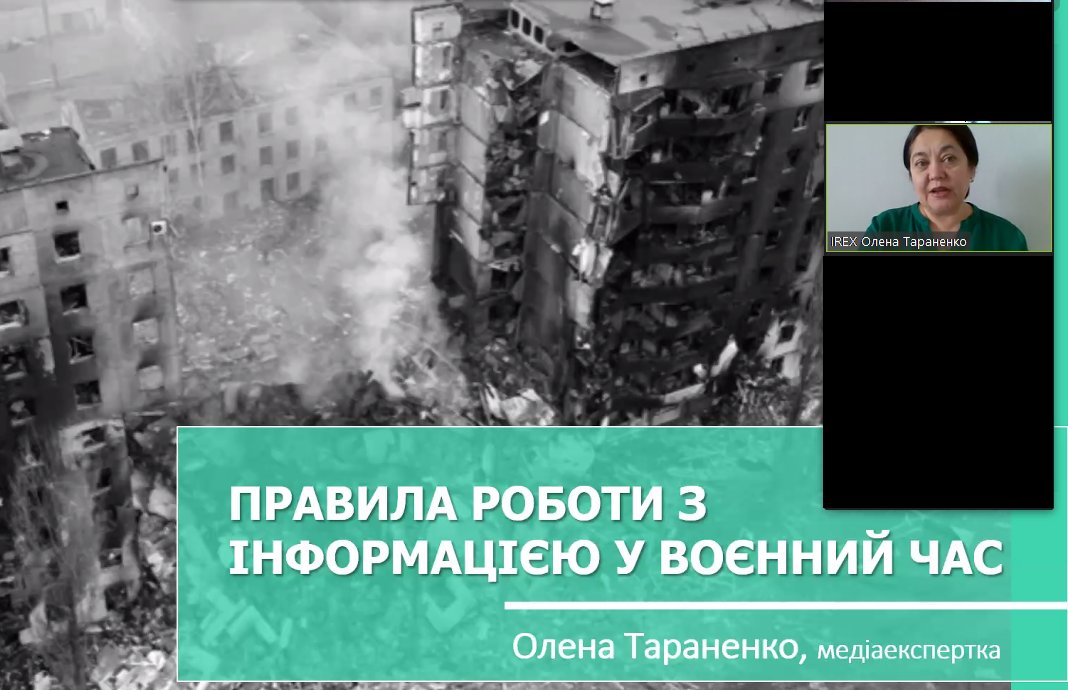 Викладачі М. Ячменик, О. Семеног виконують дослідницький проєкт з неформальної медіаосвіти, долучились до актуального вебінару «Правила роботи з інформацією у воєнний час». Вебінар провела медіаекспертка, доцентка, менеджерка проєкту «Вивчай і розрізняй: інфомедійна грамотність» Олена Тараненко. На конкретних прикладах медіаекспертка довела потребу ролі інфомедійної грамотності та дотримання вимог інфогігієни. https://www.facebook.com/n.p.ponomarenko/posts/3265910996971309