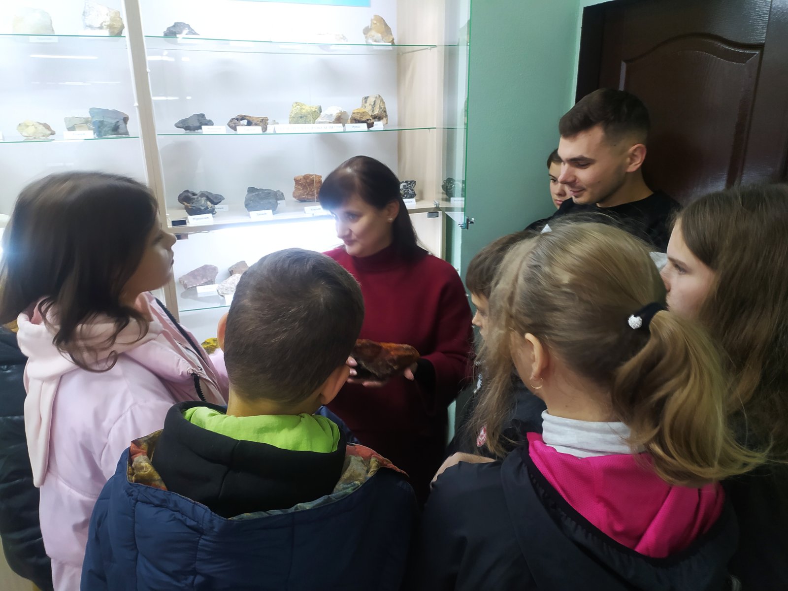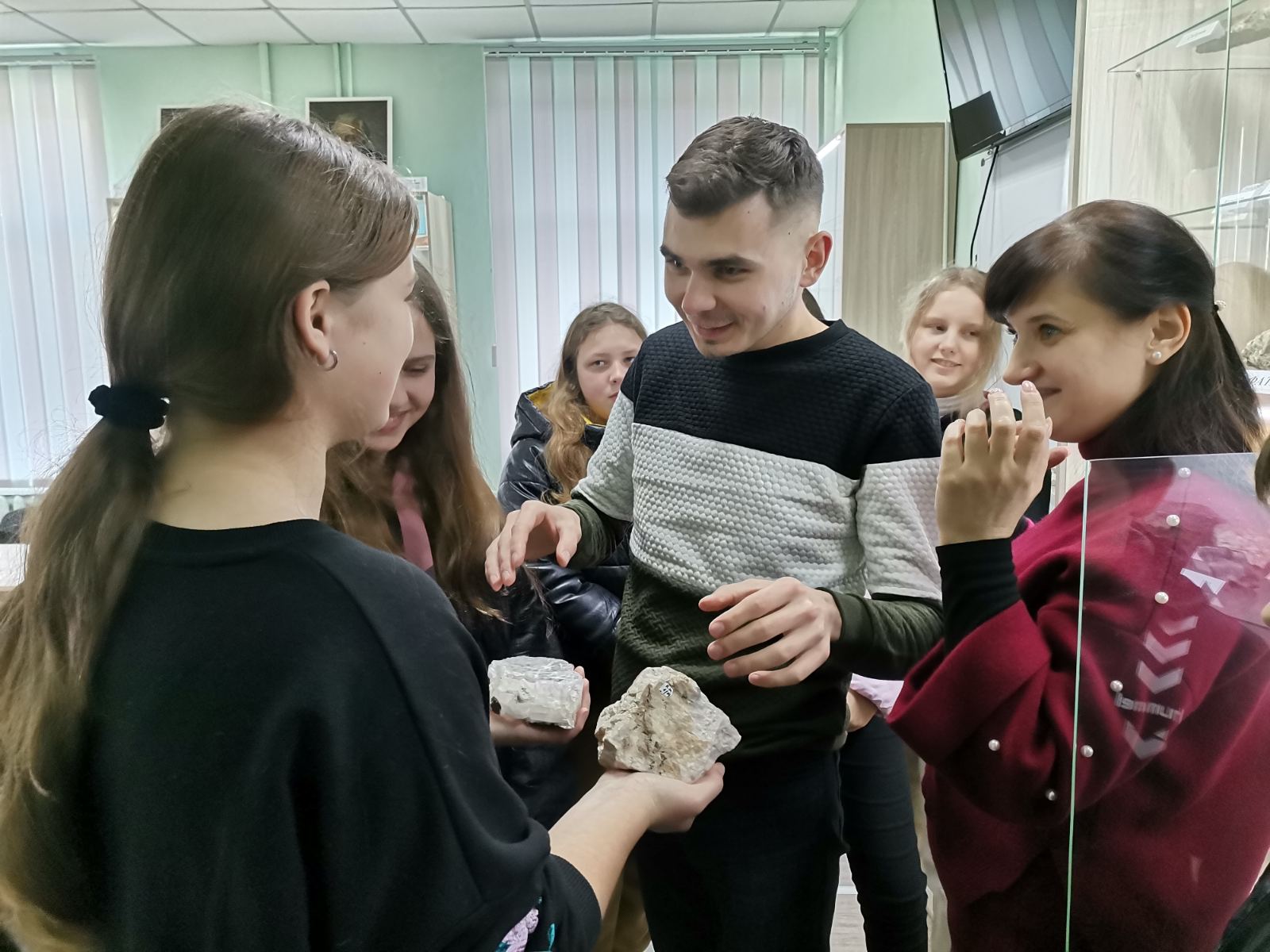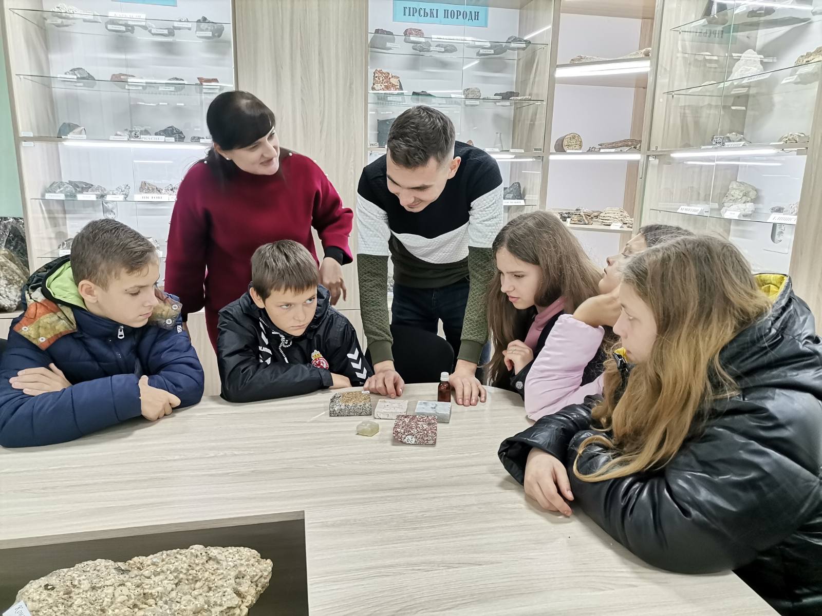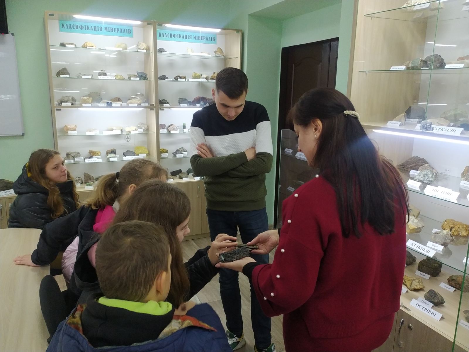 Завідувач музею канд. геогр. наук, доцент Данильченко О.С. та керівник геолого-краєзнавчого гуртка Мироненко А.О. провели спільно заняття на тему «Морфологія мінералів та їх класифікація». На занятті вихованці розглянули морфологію мінералів: друзи та щітки кварцу, секреції, конкреції фосфоритів, псевдоморфози по дереву, фрагменти сталактитів, дендрити. Учні познайомилися з основними представниками класів мінералів: графітом, сіркою, кальцитом, гіпсом, флюоритом, лімонітом, гематитом, магнетитом, кварцом, аметистом, гранатом і багатьма іншими, а також отримали завдання підготувати повідомлення про мінерал.