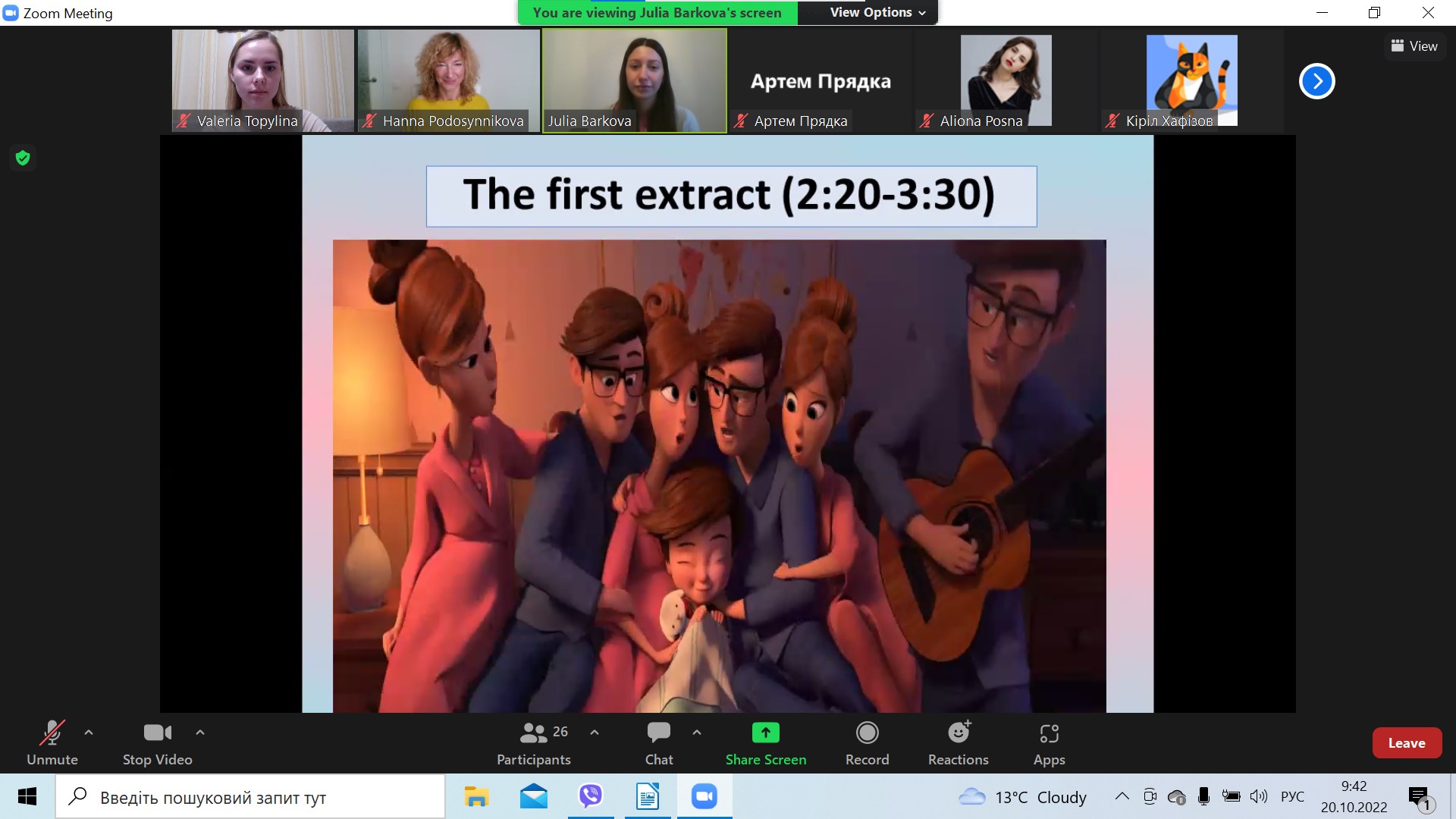 20-го жовтня 2022-го року в інтерактивному занятті, яке разом з доцентом Г.І.Подосинніковою провели члени лабораторії магістранти 2 року навчання Барковою Юлія Вікторівна та Топиліна Валерія Богданівна, взяли участь студенти освітньо-професійних програм спеціальностей 014 Середня освіта (Мова і література (англійська)) ОР Бакалавр, групи 331, 333 та 014 Середня освіта (Англійська мова) ОР Магістр, група 351.