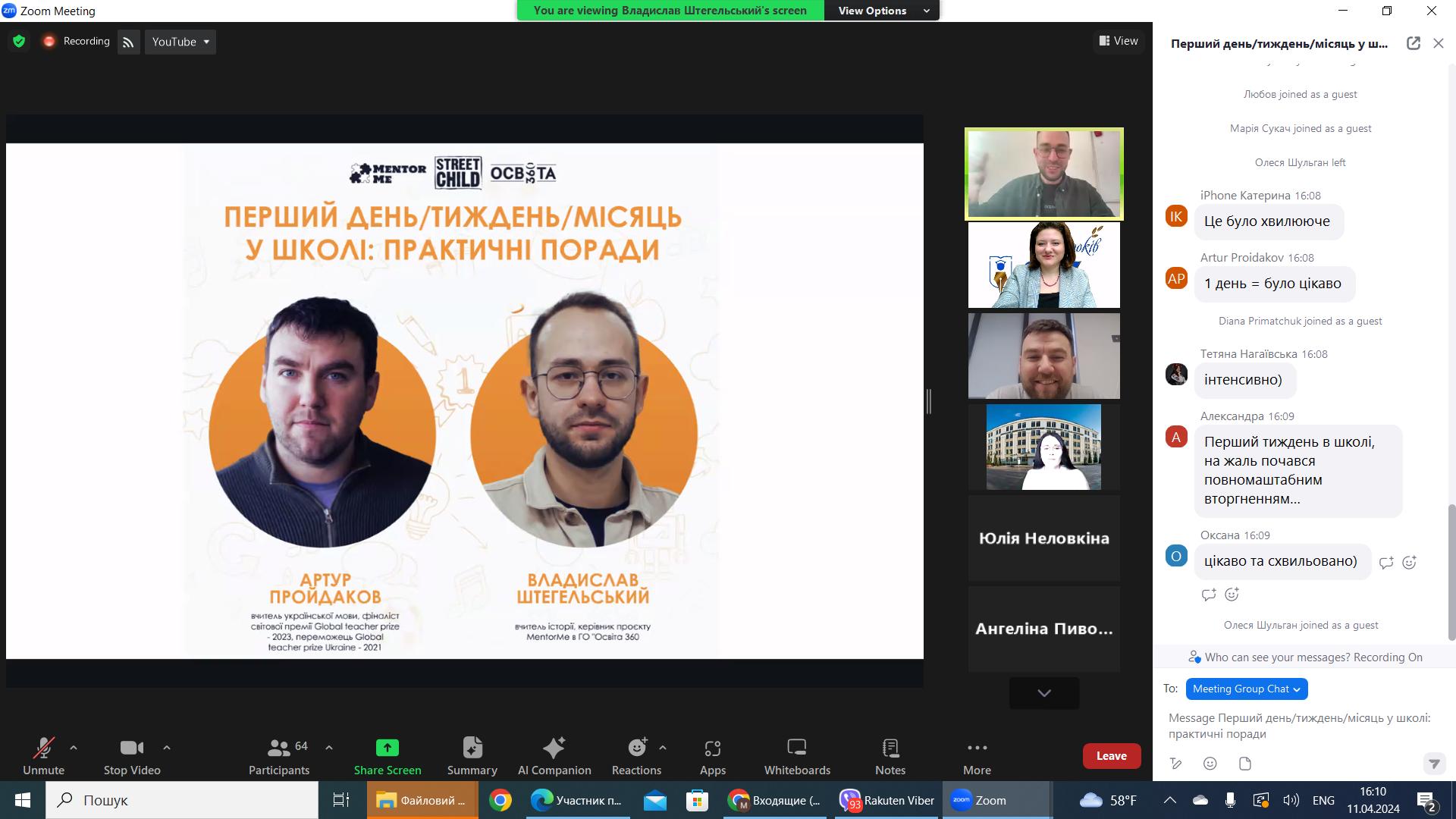 11 квітня 2024 року здобувачі освіти освітньо-професійних програм Середня освіта (Українська мова і література), Середня освіта (Українська мова і література. Англійська мова), Середня освіта (Історія), Середня освіта (Інформатика), природничо-географічного факультету долучилися до програми менторства, яка зорієнтована підвищити престижність роботи в школі, покращити практичні навички підготовки студентів педагогічних вишів та полегшити вхід у професію.
