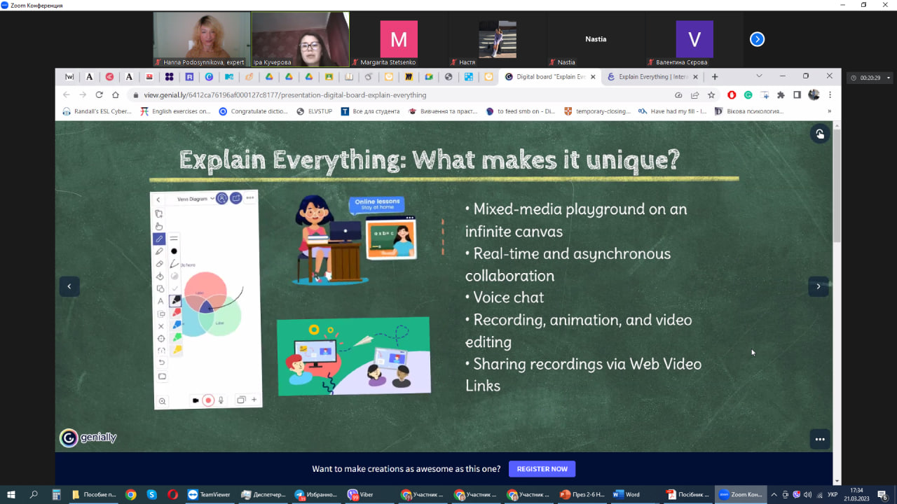 Ірина Кучерова розповіла про інтерактивну дошку Explain Everyrhing. Вона продемонструвала, як нею користуватися, і як вона може допомогти у підготовці та проведенні уроків не лише англійської мови а і усіх інших.
