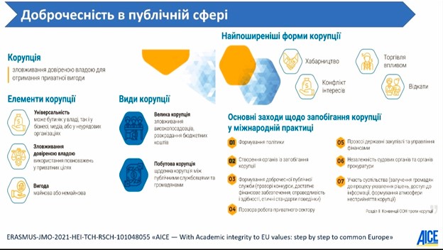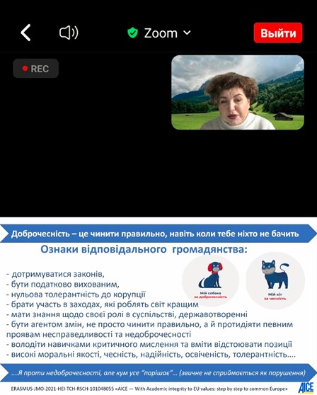10.01.23 була представлена академічна доброчесність в різноманітних сферах діяльності людини, на різних рівнях в бізнесу, надані рекомендації що до перших кроків студента як молодого науковця (дослідницька та виробнича доброчесність) за європейськими стандартами.