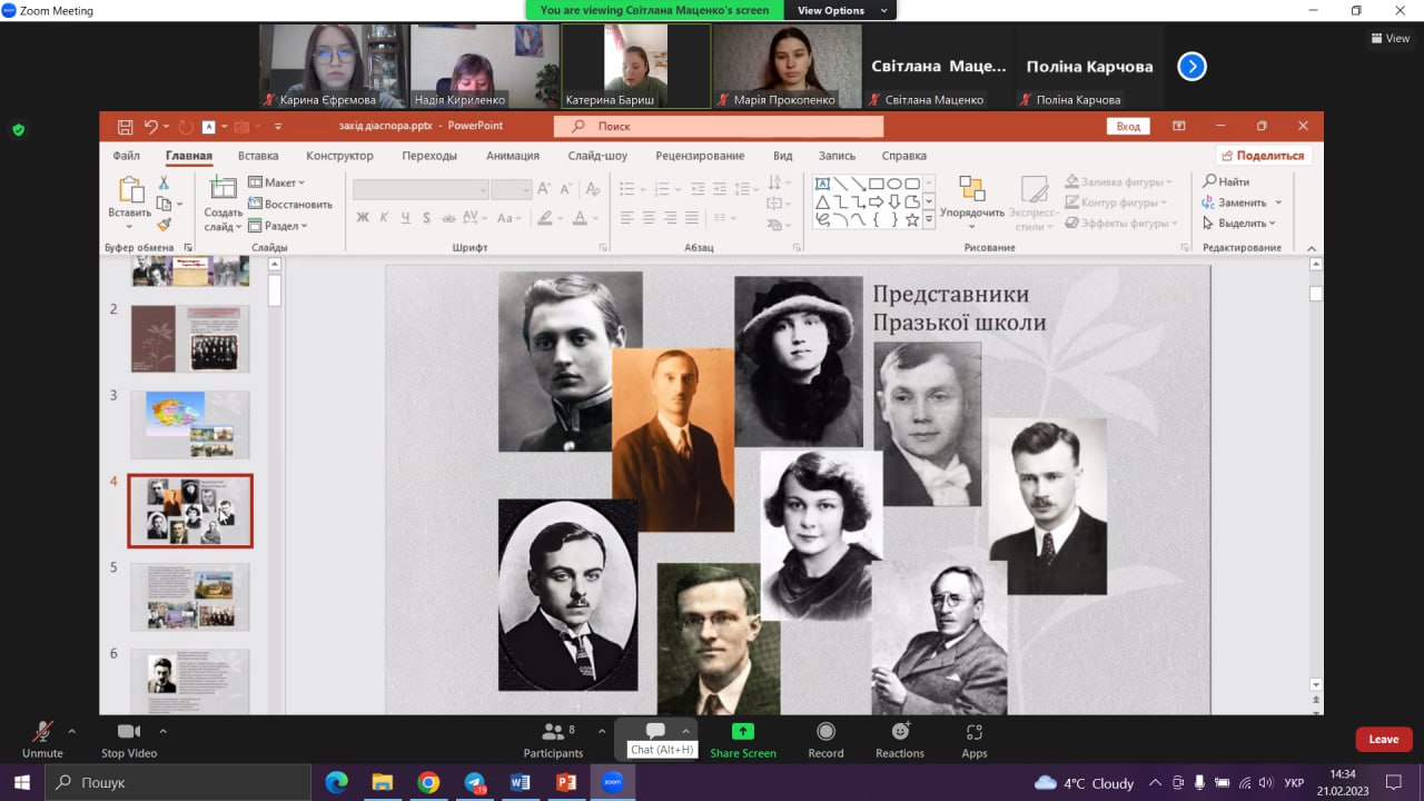 Студенти 2 курсу презентували творчість митців української діаспори, зокрема "Празької школи", письменників-земляків. Тут звучали синкретичні поезії , в яких відбився "вольовий тип українця, волюнтаризм, любов до рідного краю, мови, традицій. Митці витворили біля себе сильні поля "аристократизму духу", створювали новий тип людини, тож їхня творчість актуальна й нині.