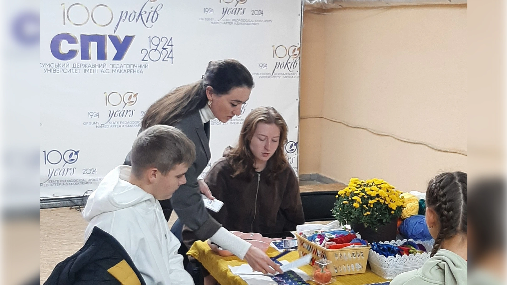 4 листопада 2025 року, соціальний педагог СумДПУ імені А. С. Макаренка Маргарита ЧЕРЕДНИЧЕНКО провела арттерапевтичний захід «Осіння гармонія» у рамках Сувенірної майстерні «Скринька творчості» для обдарованої молоді міста Сум із школи № 17.