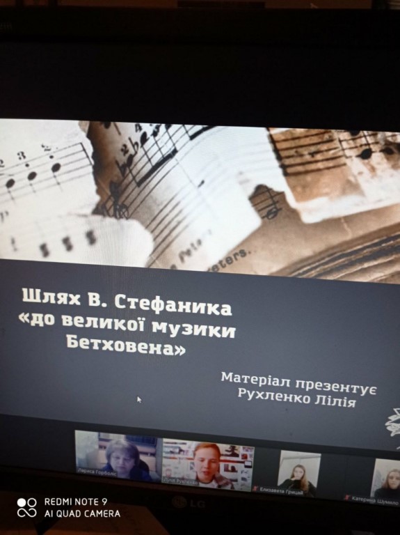 Звуки й музика у прозі Василя Стефаника» (модератори заходу – професор Горболіс Л. М., магістрантка Рухленко Л.). Третьокурсники Бережний Н., Герасимець Т., Княгницька К., Коцаревська Д., Літвінова Є., Прядко М. розповідали про значеннєвість звуків і музики у прозі Василя Стефаника-модерніста на дискусійних платформах «Про що серце голосить…», «Драматичне звучання горя у новелі «Сини», «Трагічні звуки життя» та ін. Змістовні презентації, музичний супровід (головно з творів Бетховена, музикою якого захоплювався письменник), удало підібраний відеоряд, як промовистий ілюстративний матеріал, буктрейлер до новели «Новина» (автори – Грицай Є., Провозьон С., Шумило К.) створили на заході неповторну атмосферу. До дискусійної платформи долучилися студенти різних курсів, аспіранти, викладачі інших закладів вищої освіти м. Суми та області.