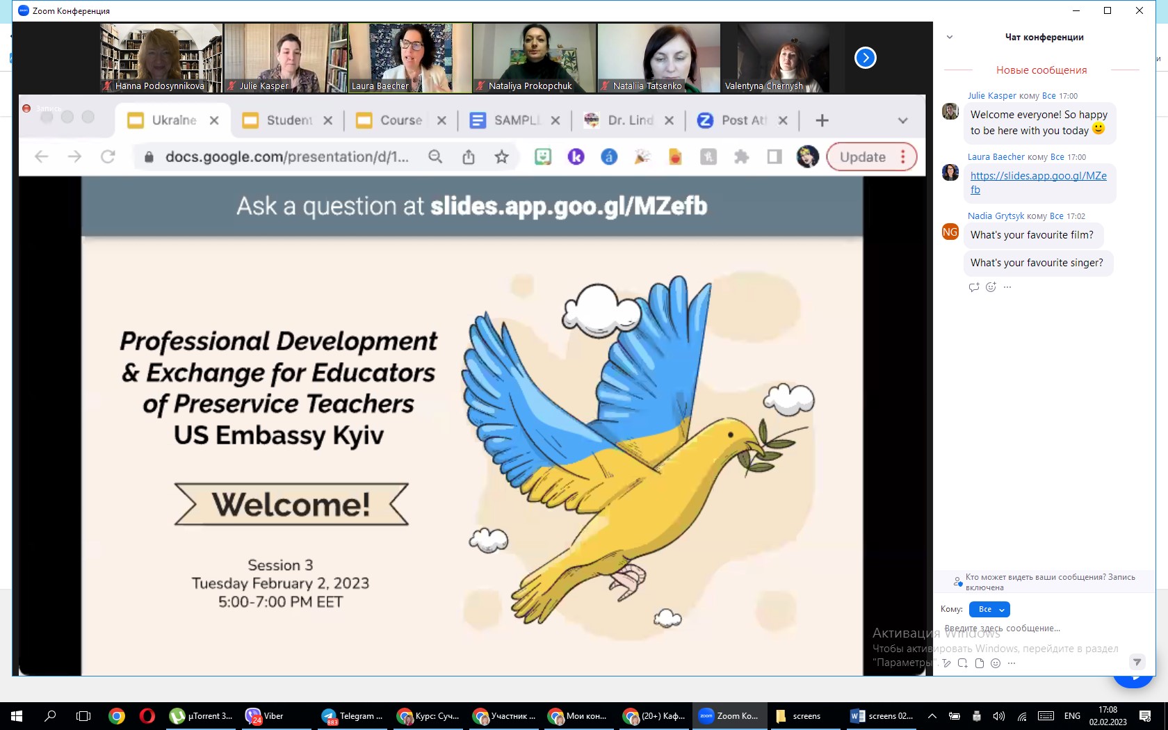 Члени Міжуніверситетської науково-дослідної лабораторії сучасних технологій навчання іноземних мов і культур (керівник – к.пед.н., доц. Г.І.Подосиннікова) кафедри англійської філології та лінгводидактики Сумського державного педагогічного університету імені А.С.Макаренка у складі команди колег з різних університетів України, які готують майбутніх учителів англійської мови, із ентузіазмом працюють у проекті "Professional Development for Instructors of Preservice Teachers" – міжнародній програмі онлайн професійного розвитку для викладачів методики навчання іноземних мов педагогічних вищих навчальних закладів України під патронатом The Regional English Language Officeat the U.S. Embassy.