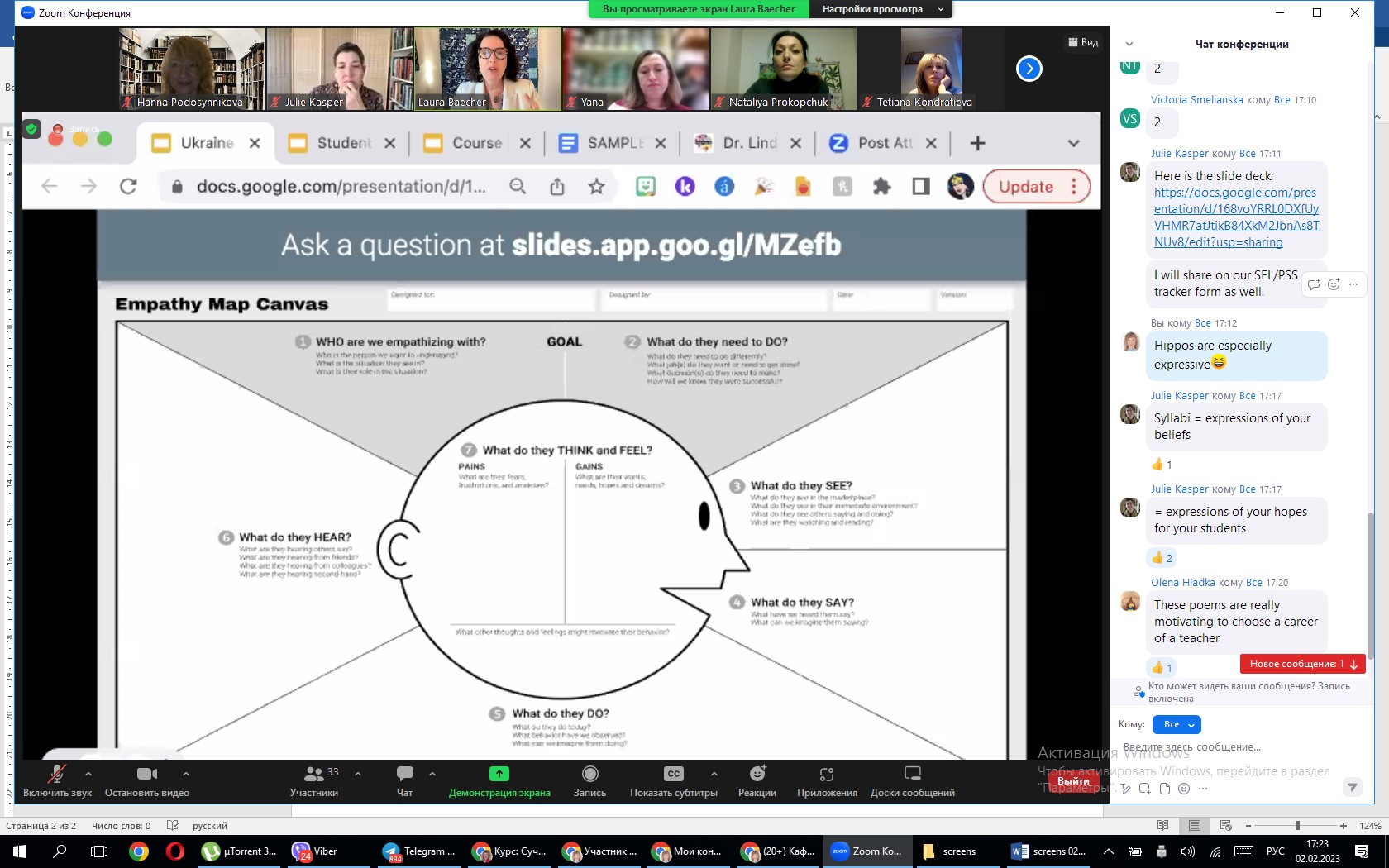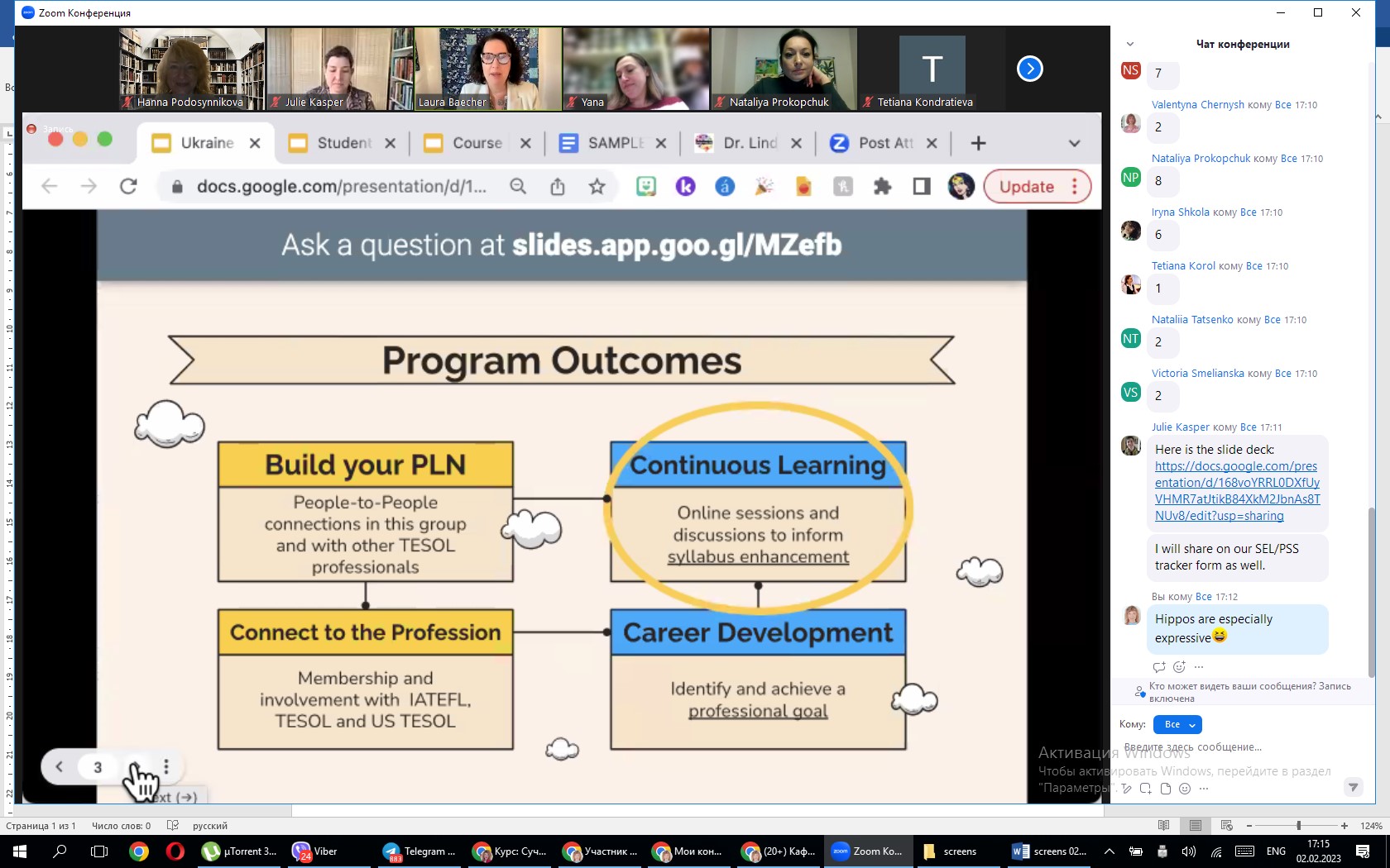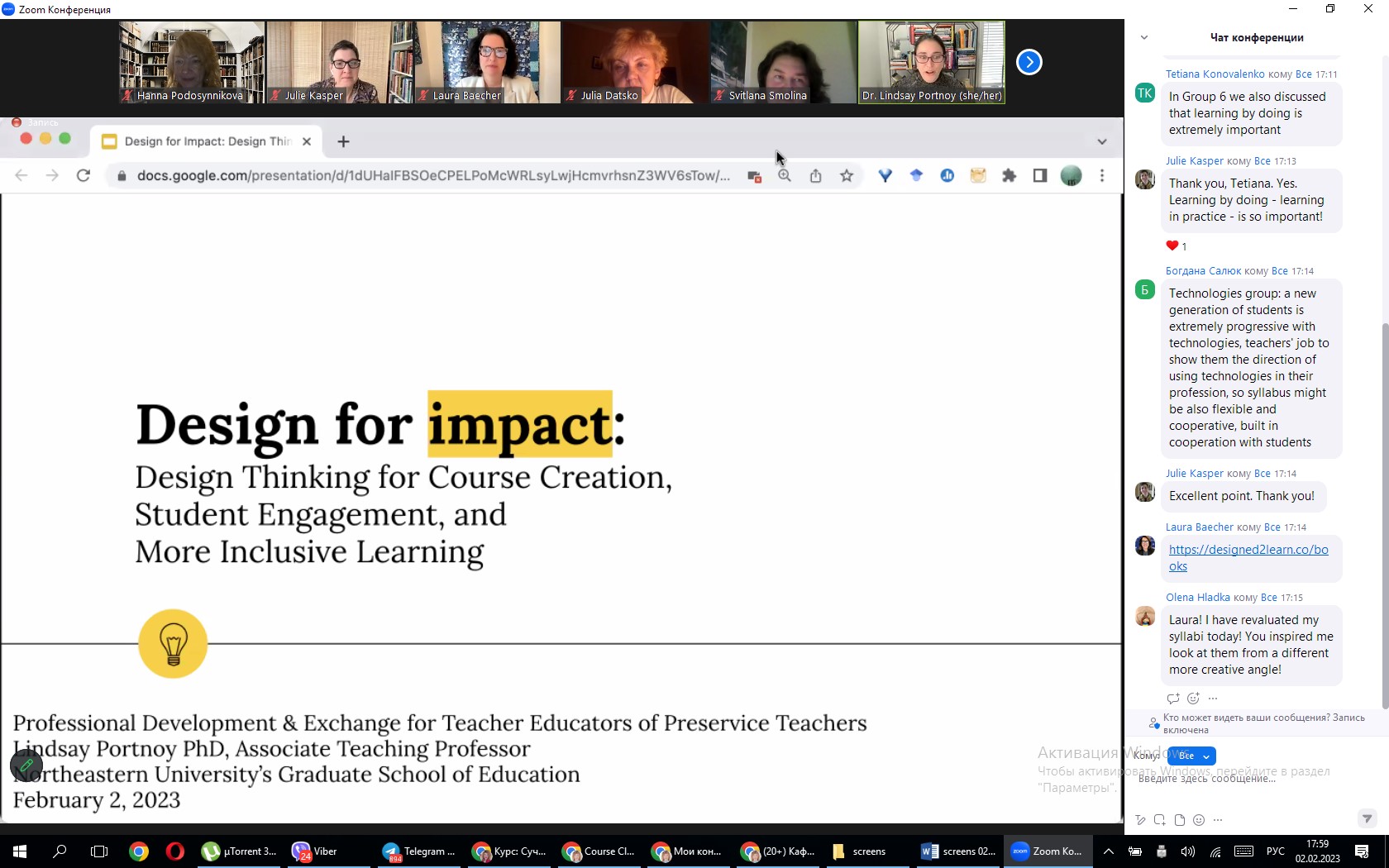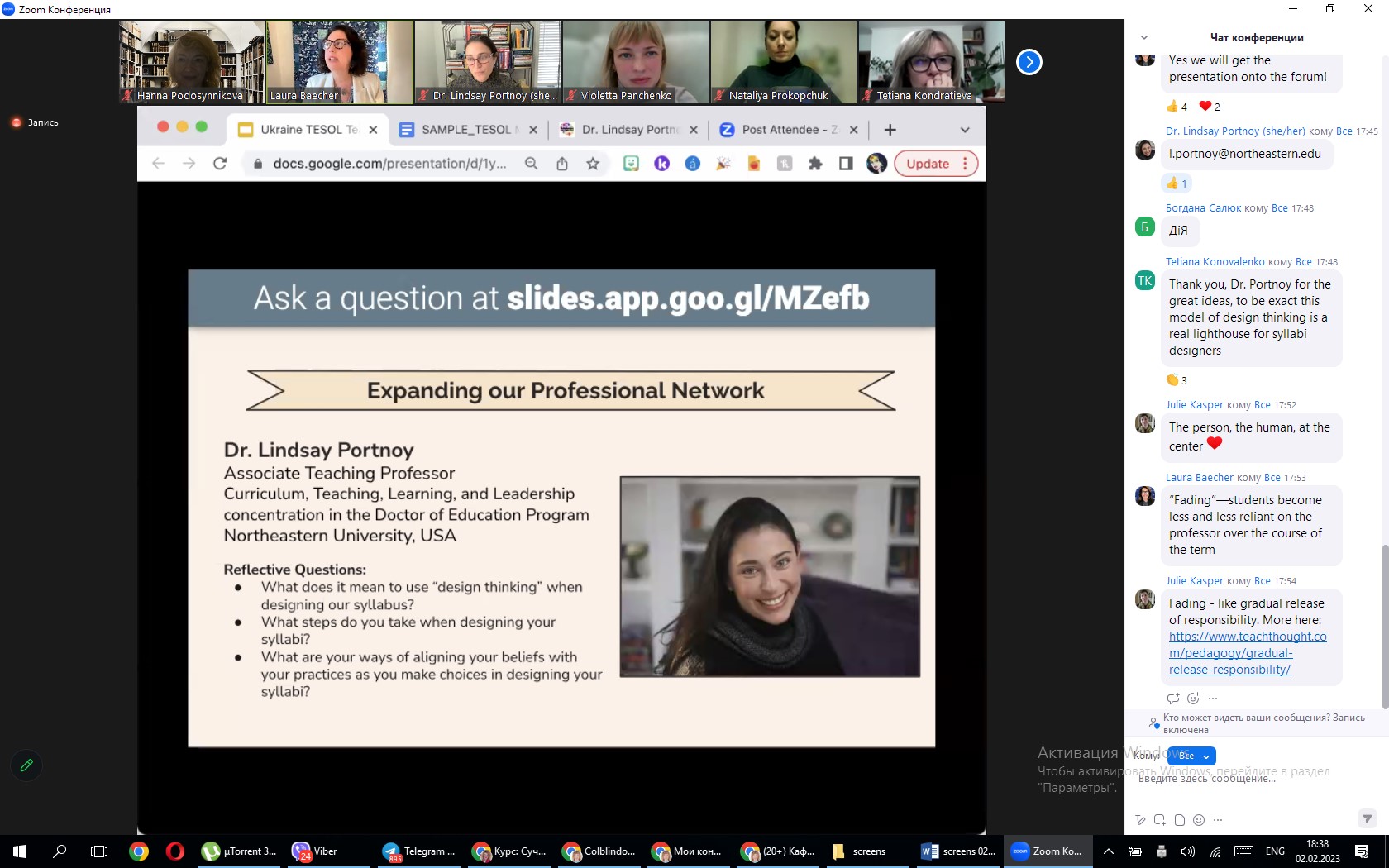 Сьогодні на дуже цікавій, ретельно спланованій сесії у групах обговорили питання, які створили мотиваційну базу для сприйняття презентації гостя програми: відомий науковець, спеціаліст з когнітивної психології в освіті, теоретик і практик гейміфікації у навчанні Dr. Lindsey Portnoy представила надзвичайно насичену, чітку, оригінальну модель створення навчальних курсів на засадах гуманістичної психології та теорії особистісно-орієнтованого навчання. Блискуче! Дякуємо за цю можливість Kyiv https://www.facebook.com/relokyiv та керівникам проекту: Dr. Laura Baecher, Professor of TESOL at Hunter College, City University of New York, and Julie Kasper, Program Manager of the Refugee Educator Academy in the CPL at Childhood Education International. Dr. Laura Baecher is a TESOL expert and recognized leader in TESOL teacher education and faculty development. Julie Kasper is an expert in holistic education in displacement/refugee contexts, TESOL specialist, and education leadership and policy scholar.