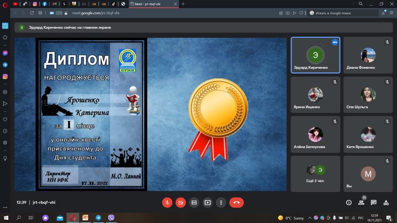 17.11.2021 р. студентами Навчально-наукового інституту фізичної культури було взято участь у «Онлайн-квесті до Дня судента».