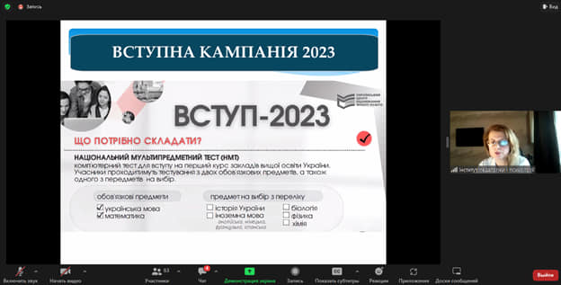 Трансляція зустрічі розпочалася з вітального слова директора ННІПП професора Світлани КОНДРАТЮК, директор привітала учасників зустрічі, закцентувавши, що вони на порозі одного з найвідповідальнішого вибору – вибору майбутньої професії та закладу вищої освіти, де її опанувати. Окреслила лідерські позиції колективу ННІПП у підготовці педагога сучасного формату.