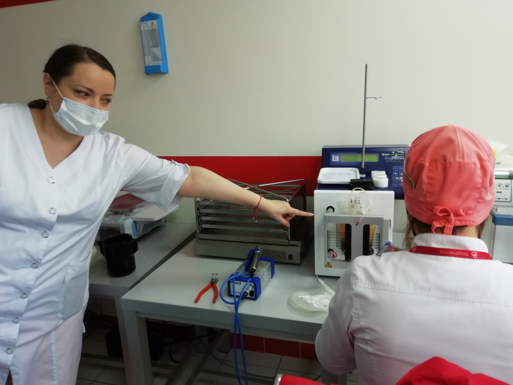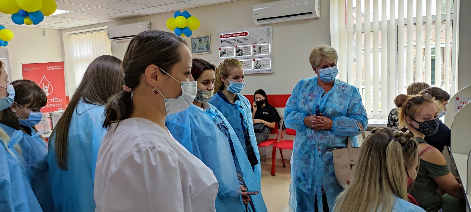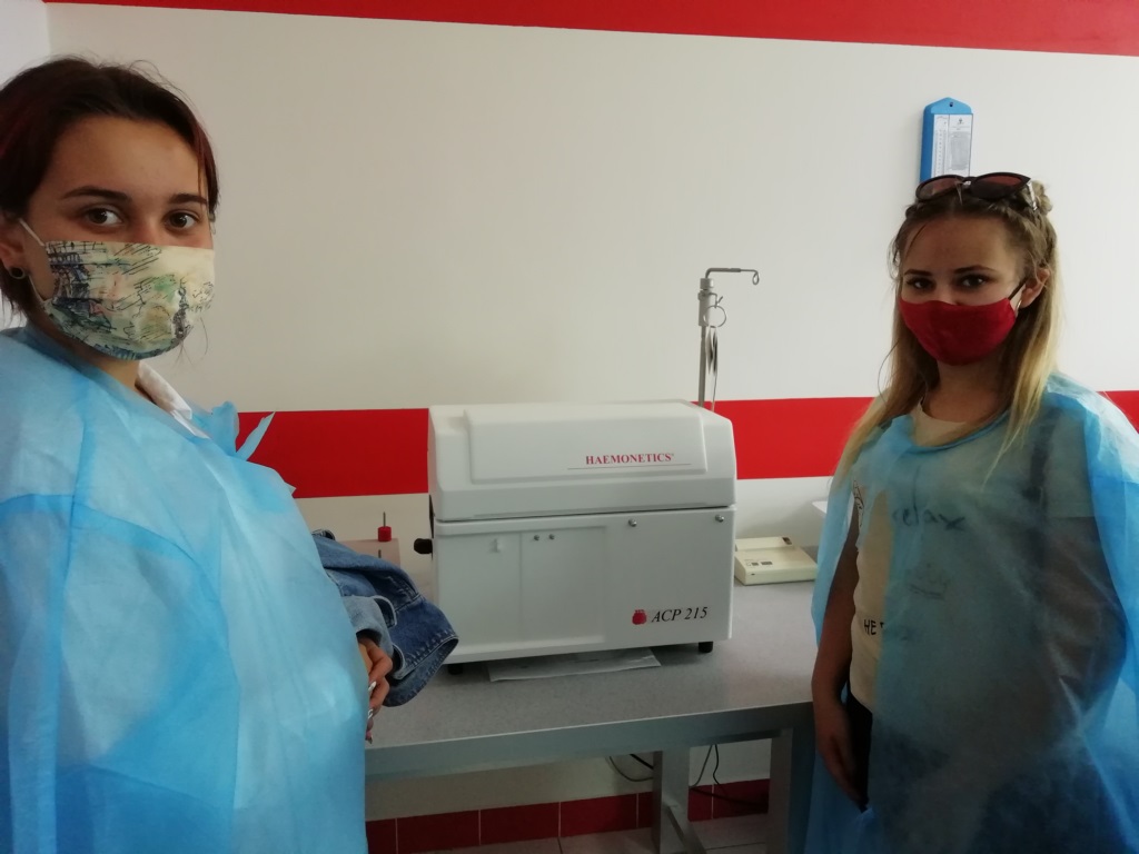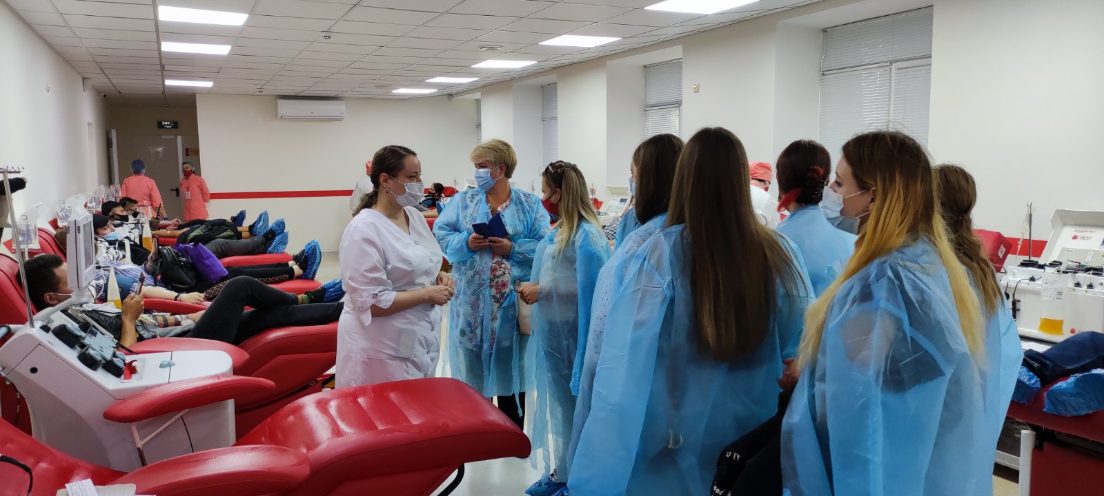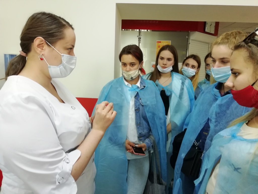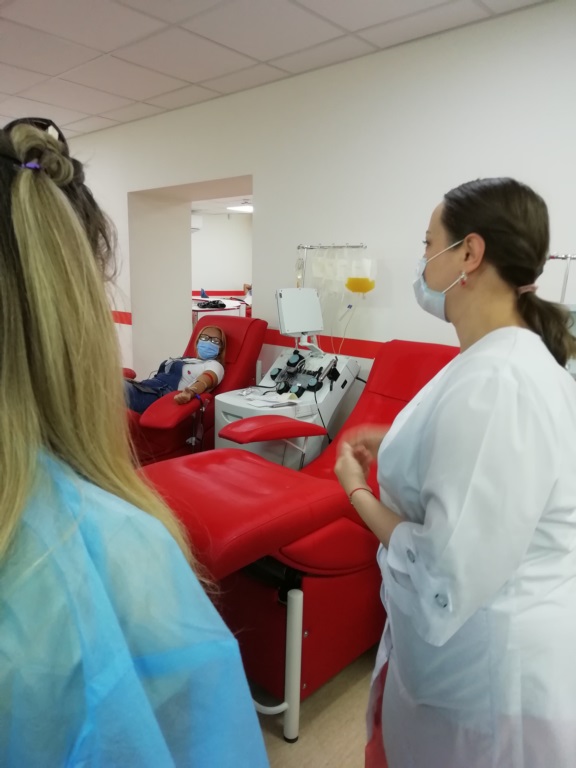 Екскурсію провели лікар-терапевт Антоніна Миколаївна Бабинець та адміністратор Нікітіна Анна Анатоліївна. Студенти ознайомилися з усіма процесами технологічного ланцюга – від залучення донорів, заготівлі крові та її компонентів до кінцевих виробничих етапів, які спрямовані на гарантування якості і безпеки компонентів крові.