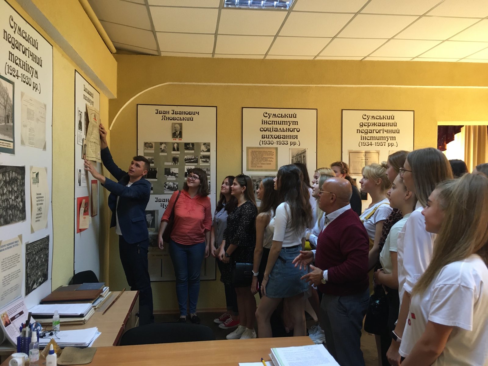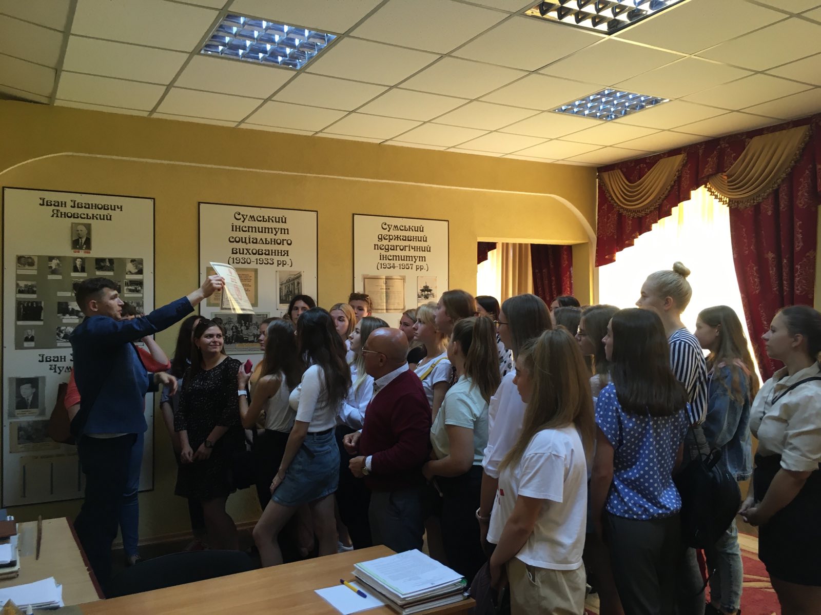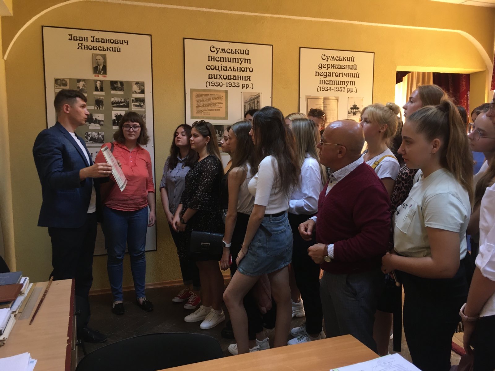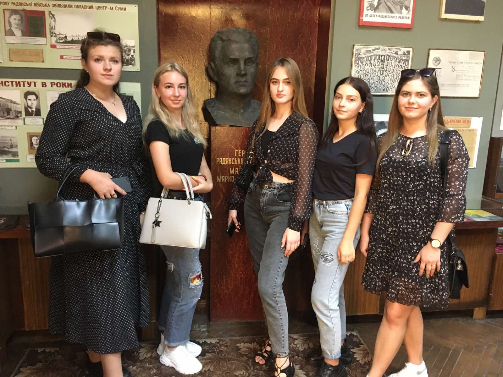 У перший день навчального року студентки 917 групи спеціальності 016 Спеціальна освіта (Логопедія) під проводом куратора професора Анатолія Кравченка вирушили на екскурсію до центрального корпусу СумДПУ імені А. С. Макаренка.