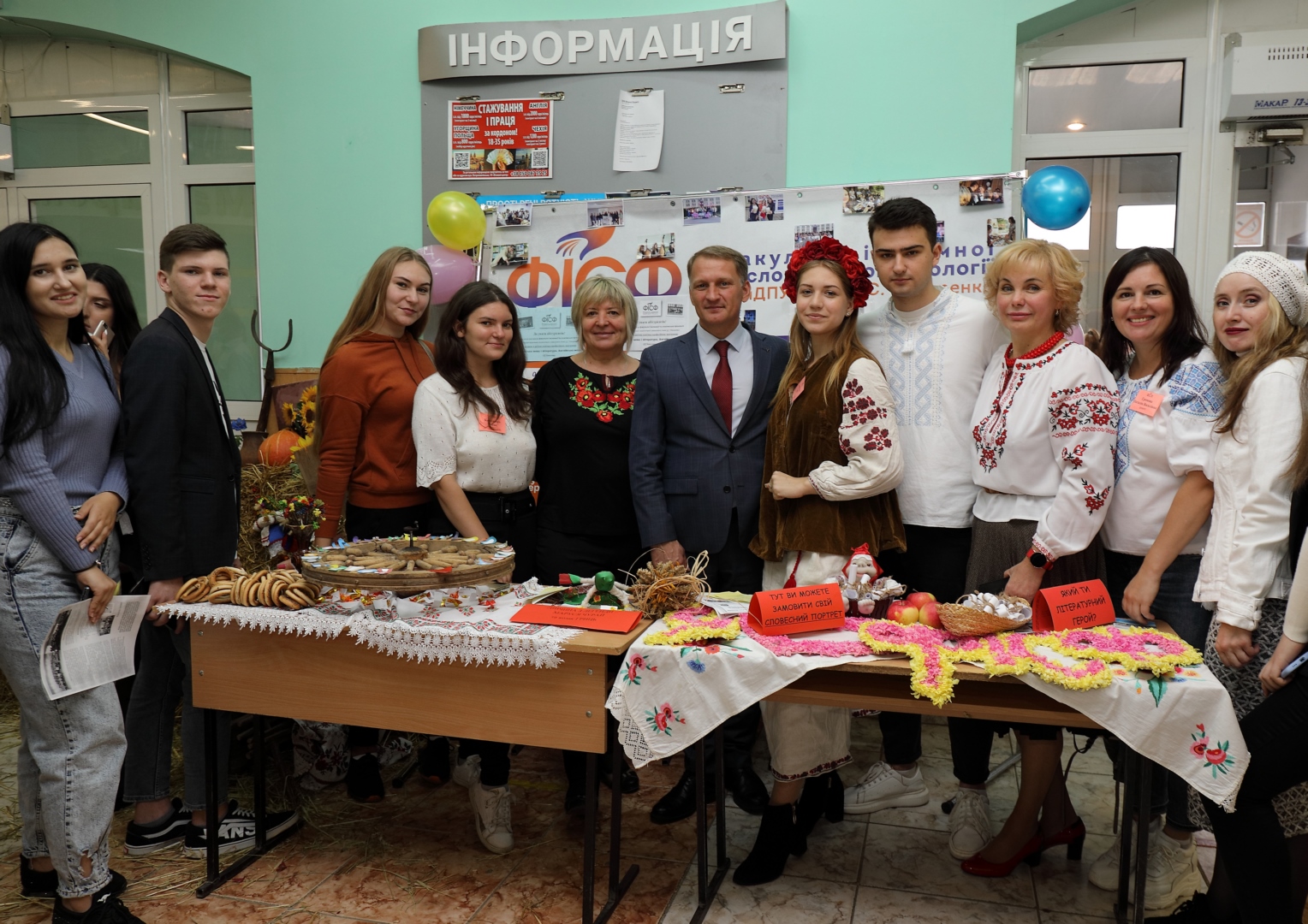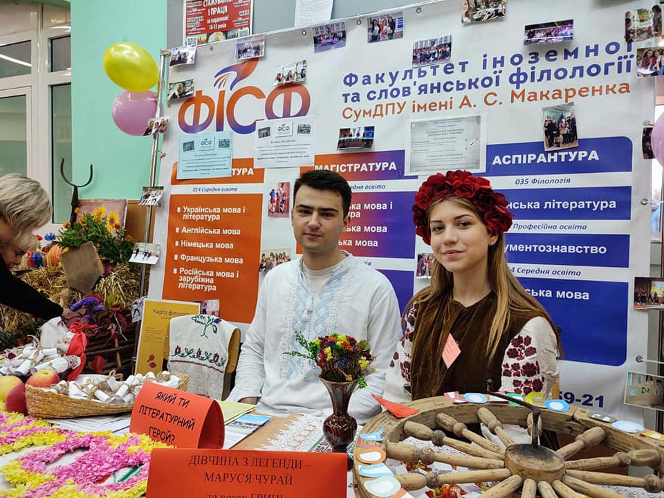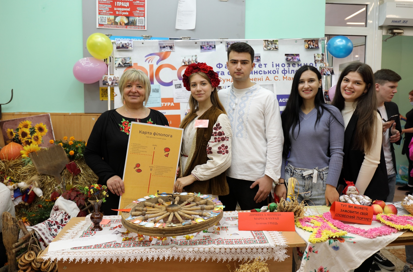 Тут можна було насолодитися цікавими локаціями в етностилі, відчути себе в образі щирої україночки, замовити словесний портрет (у заступника студдекана, студентки 3 курсу Іванько Альони), ознайомитися з "Картою філолога" (екскурсовод – Некрасова Аліна), почитати свіжу газету "Філологічний безвіз" (редактори – магістр Олена Ковтуненко та ст. викладач Марина Ячменик), дати інтерв'ю (журналісти – студенти Світлана Маценко, Ілля Вакін), поспілкуватися з професорсько-викладацьким складом, студентським самоврядуванням та іншими стейкхолдерами.