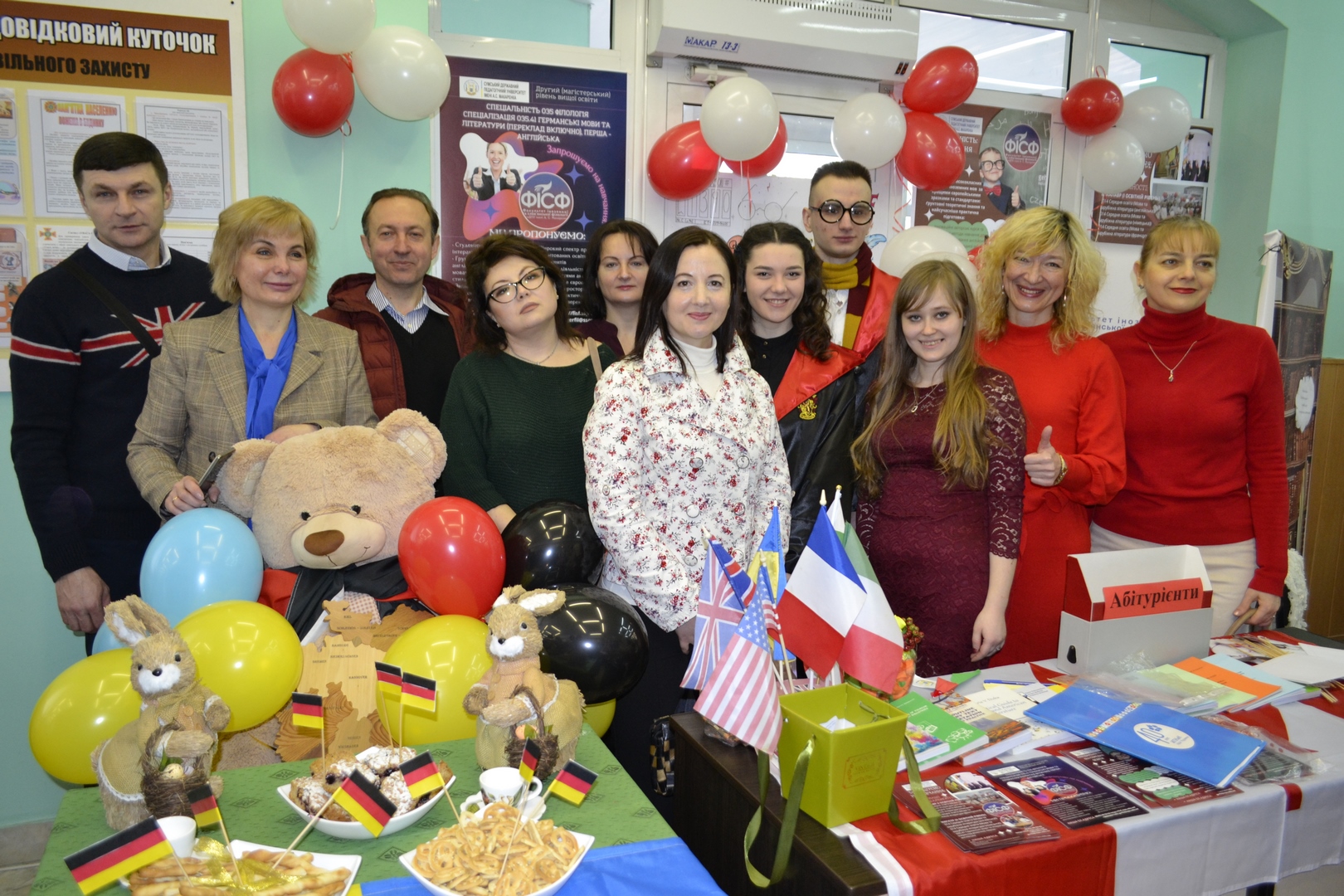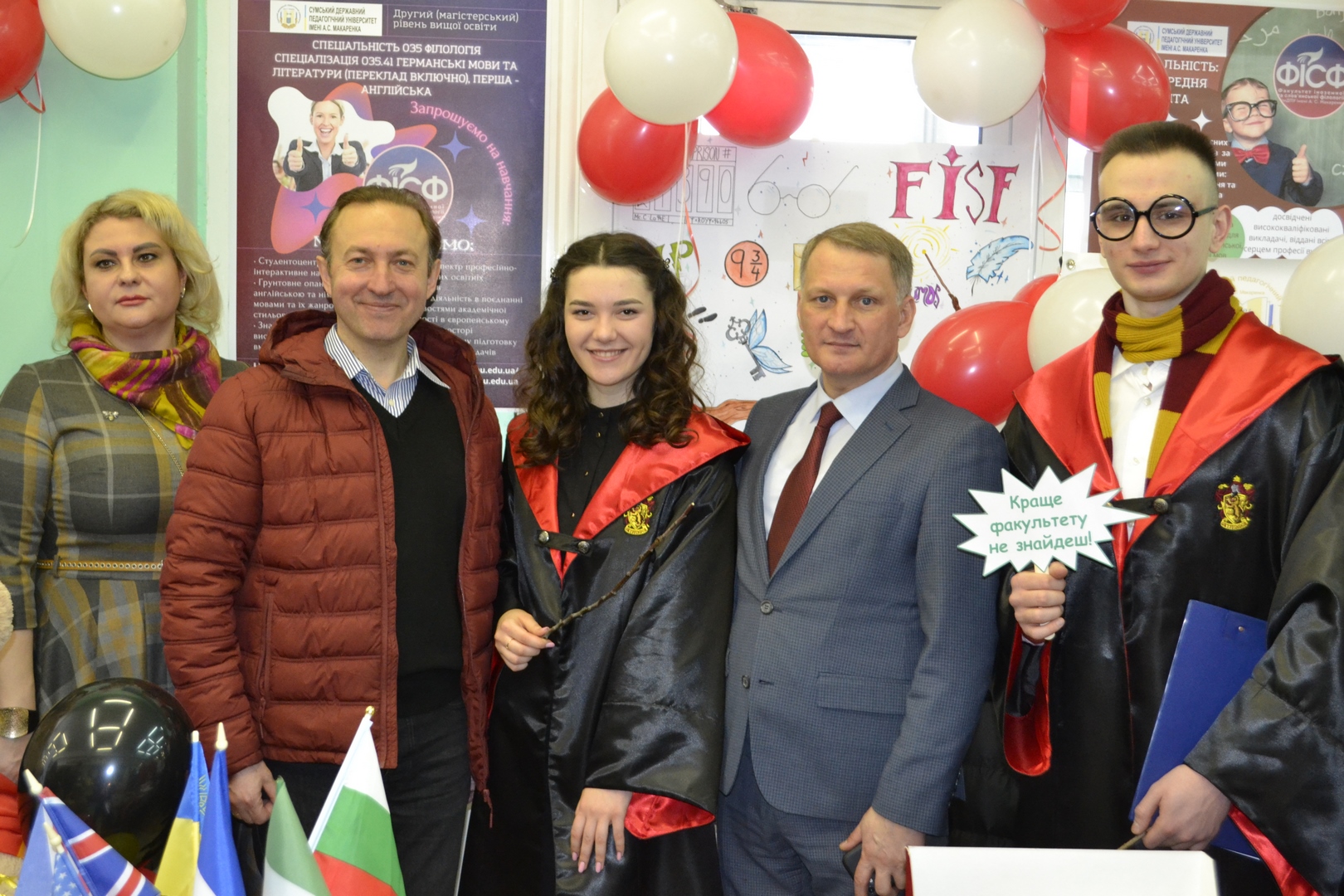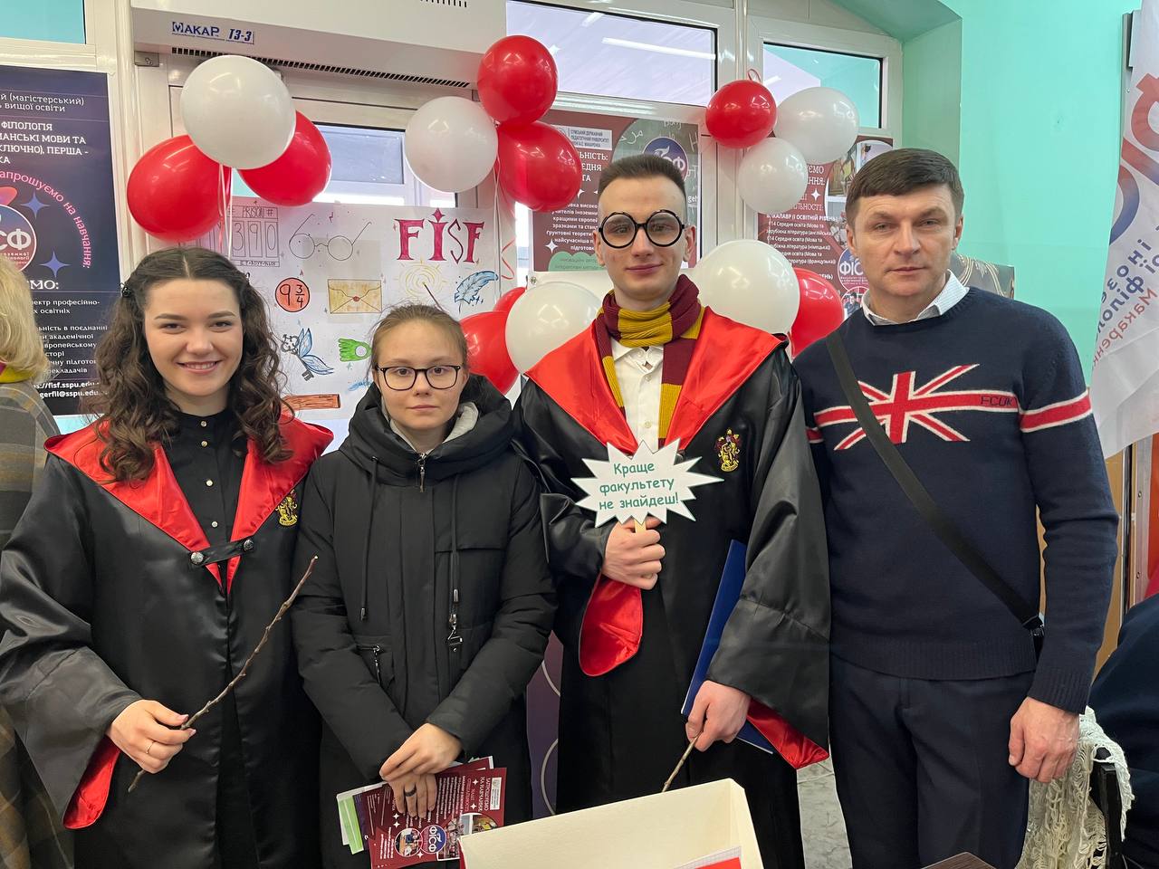 Дійство відбулося в казковій атмосфері поттеріади. На ярмарку спеціальностей абітурієнтів вітали чарівники Гаррі Поттер (Кіріл Хафізов, магістрант 351 групи) та Герміона Грейнджер (Анастасія Гримайло, студентка 331 групи), які провели захоплюючу країнознавчу вікторину про лінгвокультурогічні цікавинки Великої Британії та про художні перипетії найпопулярнішого сіквелу Дж.К. Роулінг «Гаррі Поттер». Абітурієнти мали рідкісну вдачу дізнатися про своє навчання на нашому факультеті, зазирнувши у майбутнє за допомогою виключно позитивних передбачень, якими з радістю ділилася чаклунка Герміона. Усі активні учасники запропонованих квестів отримали символічні подаруночки, ласували смаколиками, а наприкінці потенційні абітурієнти взяли участь у розіграші чашки з логотипом нашого факультету – як символу вдачі та майбутніх успіхів.