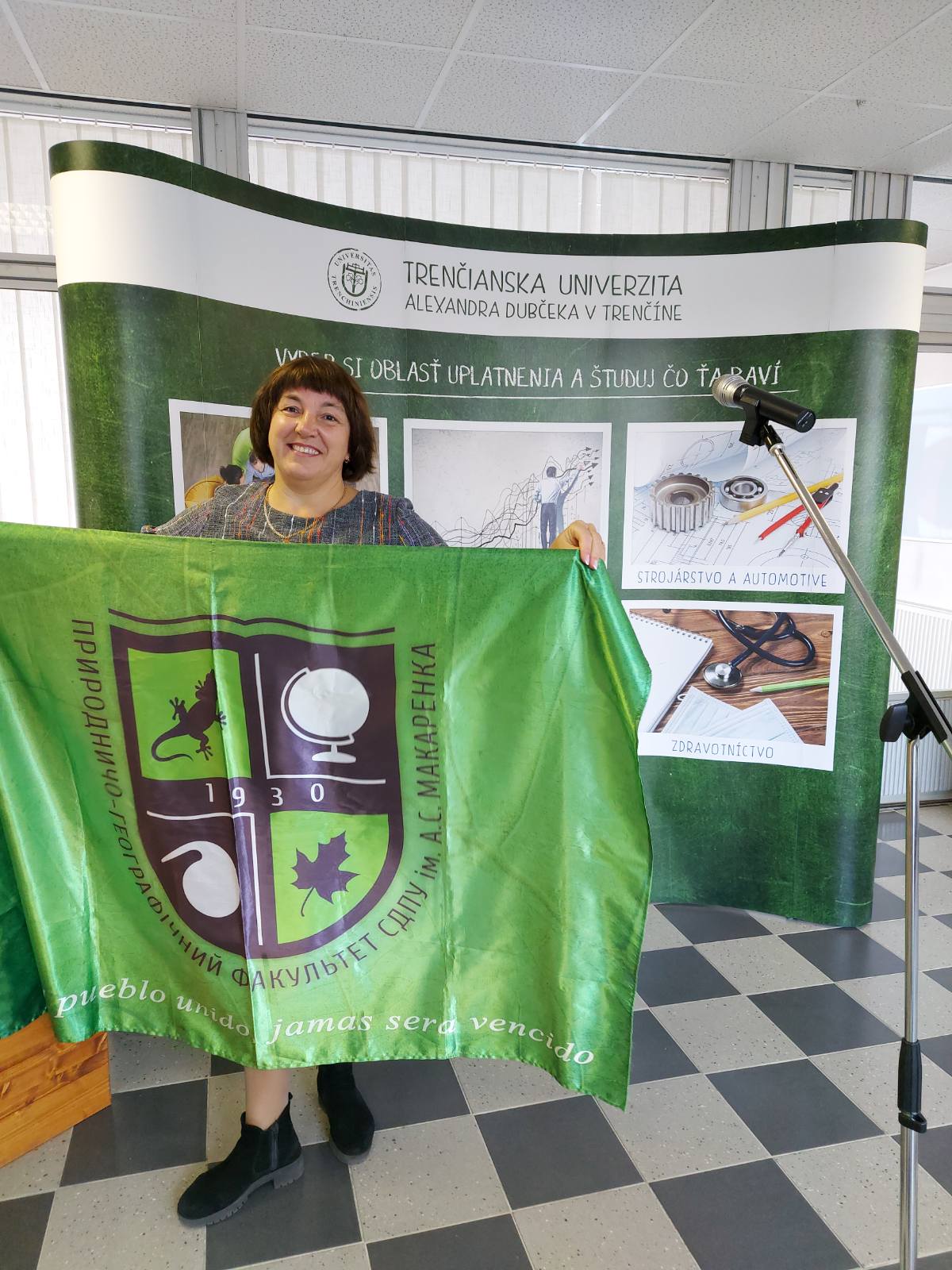 Під час перебування за Програмою, Людмила Петрівна та 2 студентки ПГФ – Анастасія Вірченко та Богдана Ждамірова, які зараз навчаються у Словаччині також за програмою Erasmus+, мали можливість презентувати рідний Природничо-географічний факультет СумДПУ імені А.С.Макаренка та весь університет студентам та викладачам Тренчинського університету Олександра Дубчека у Тренчині. Запросили всіх в Україну на обмін за програмою Erasmus +. Декан ПГФ Людмила Міронець підготувала презентацію на словацькій мові. Студенти зацікавилися можливістю навчатися на природничо - географічному факультеті СумДПУ імені А.С.Макаренка!