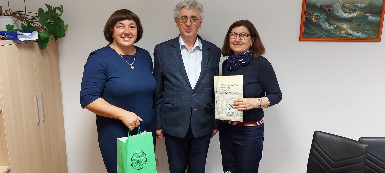 Природничо-географічний факультет СумДПУ імені А.С.Макаренка має також договір про співпрацю з Університетом Св.Кирила і Мефодія у Трнаві (Словаччина) на реалізацію спільних проєктів. Тому під час зустрічі декана ПГФ Людмили Міронець із деканом факультету природничих наук, доктором Йозефом Сокол та продеканкою Беатою Врановічовою було обговорено шляхи реалізації співпраці. Домовилися про взаємну участь студентів обох країн спеціальності «Хімія» та «Біологія» за програмою КА1 Erasmus+ на 2022 рік, спільні конференції, спільні наукові публікації та можливість подвійного дипломування. Декан Йозеф Сокол особисто провів екскурсію по 5 поверховому лабораторному корпусу факультету, який розташований у м.Шпаченці. На згадку обмінялися пам'ятними сувенірами.