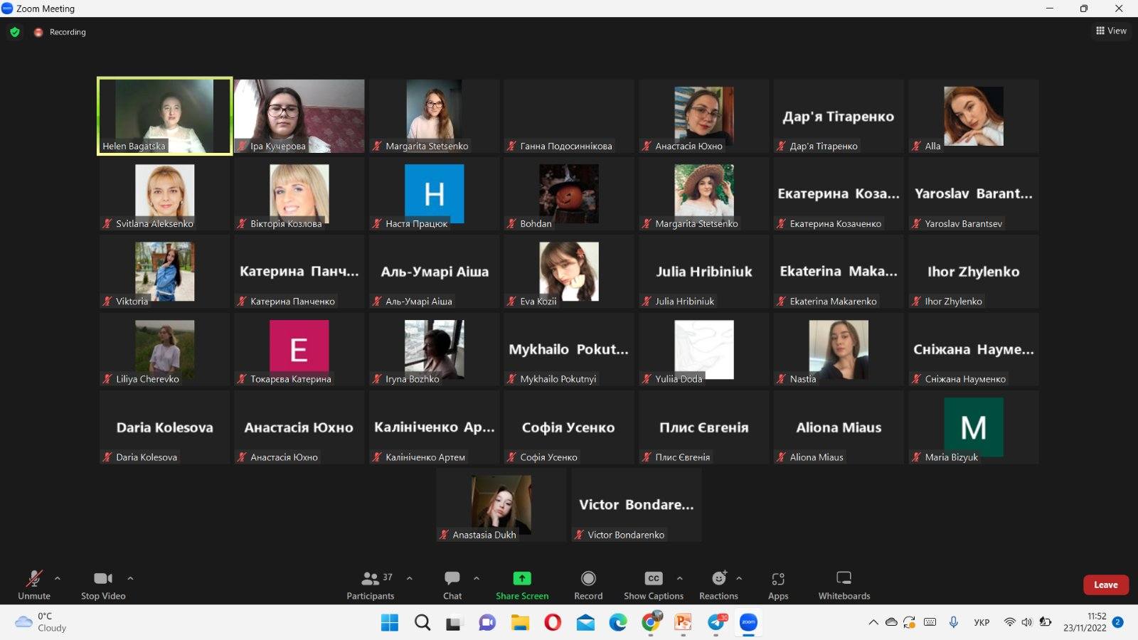 БАГАЦЬКА Олена Вікторівна, член Міжуніверситетської науково-дослідної лабораторії сучасних технологій навчання іноземних мов і культур (керівник к.пед.н., доц. Подосиннікова Г.І.), кандидат філологічних наук, доцент, успішно пройшла конкурсний відбір серед викладачів провідних вищих навчальних закладів України та взяла участь у міжнародному проєкті при посольстві США в Україні INSTITUTE OF CREATIVE WRITING for ESL instructors.