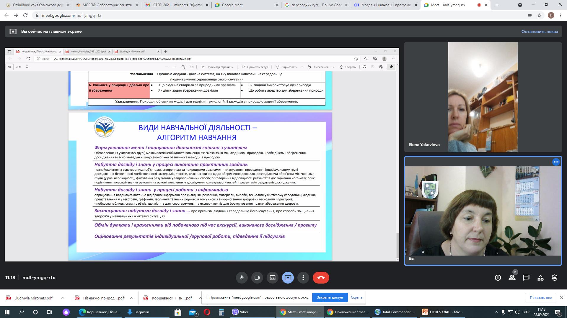На природничо-географічному факультеті з 20.09.21 по 24.09.2021 вчителі Комунальної установи Сумська загальноосвітня школа І-ІІІ ступенів № 18 Сумської міської ради Ткачова Світлана Володимирівна та Яковлєва Олена Анатоліївна пройшли курси підвищення кваліфікації з біології та природознавства у обсязі 30 год. (1 кредит).