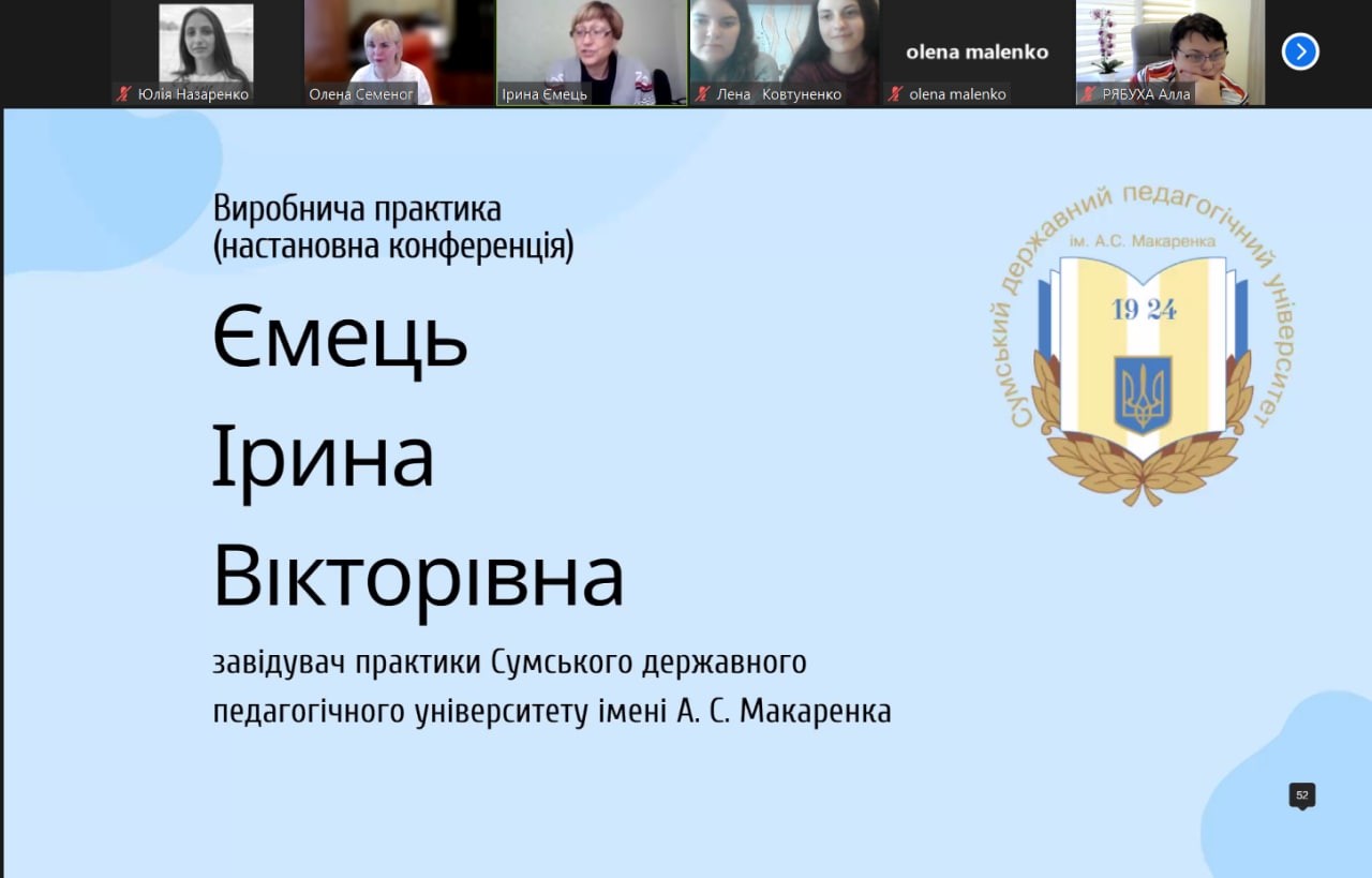 Ємець Ірина Вікторівна, завідувач практики Сумського державного педагогічного університету імені А. С. Макаренка, ознайомила студентів з необхідною звітною документацією.