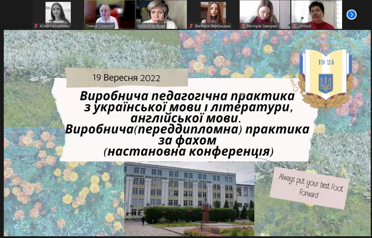 Фінальний рік навчання для студентів-магістрантів 2-го курсу розпочинається із виробничої педагогічної практики, тому перед її початком 19.09.2022 у Сумському державному педагогічному університеті імені А. С. Макаренка відбулась настановна конференція.