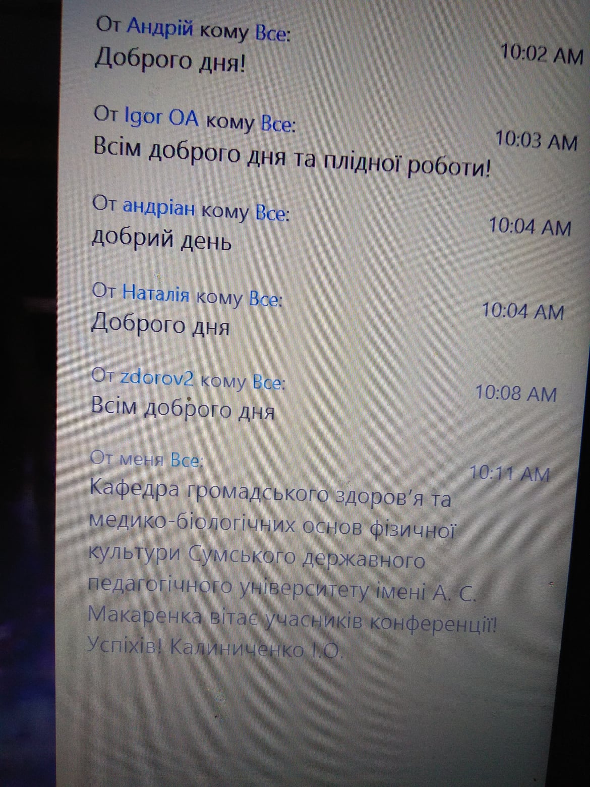 12-13 листопада 2020 року (у режимі Он-лайн) викладачі кафедри громадського здоров’я та медико-біологічних основ фізичної культури Сумського державного педагогічного університету імені А. С. Макаренка брали участь у роботі науково-практичної конференції «Фізичні фактори довкілля і їх вплив на формування здоров’я населення України» (шістнадцяті Марзєєвські читання).