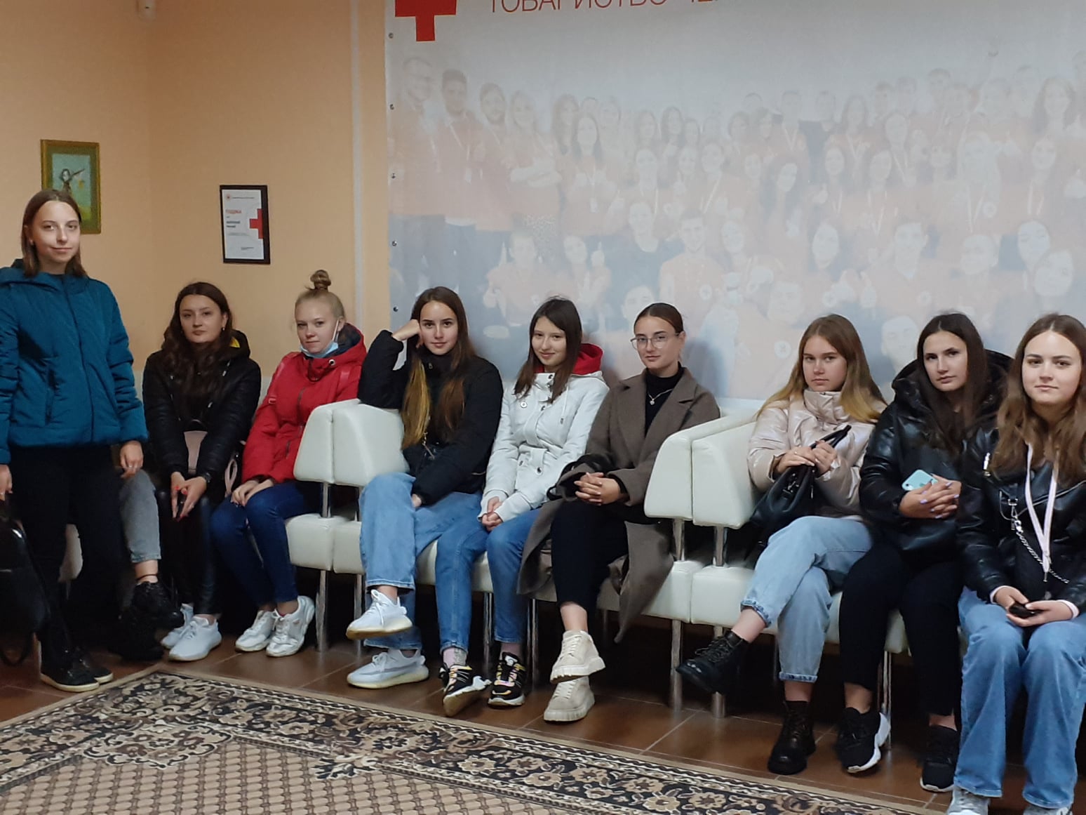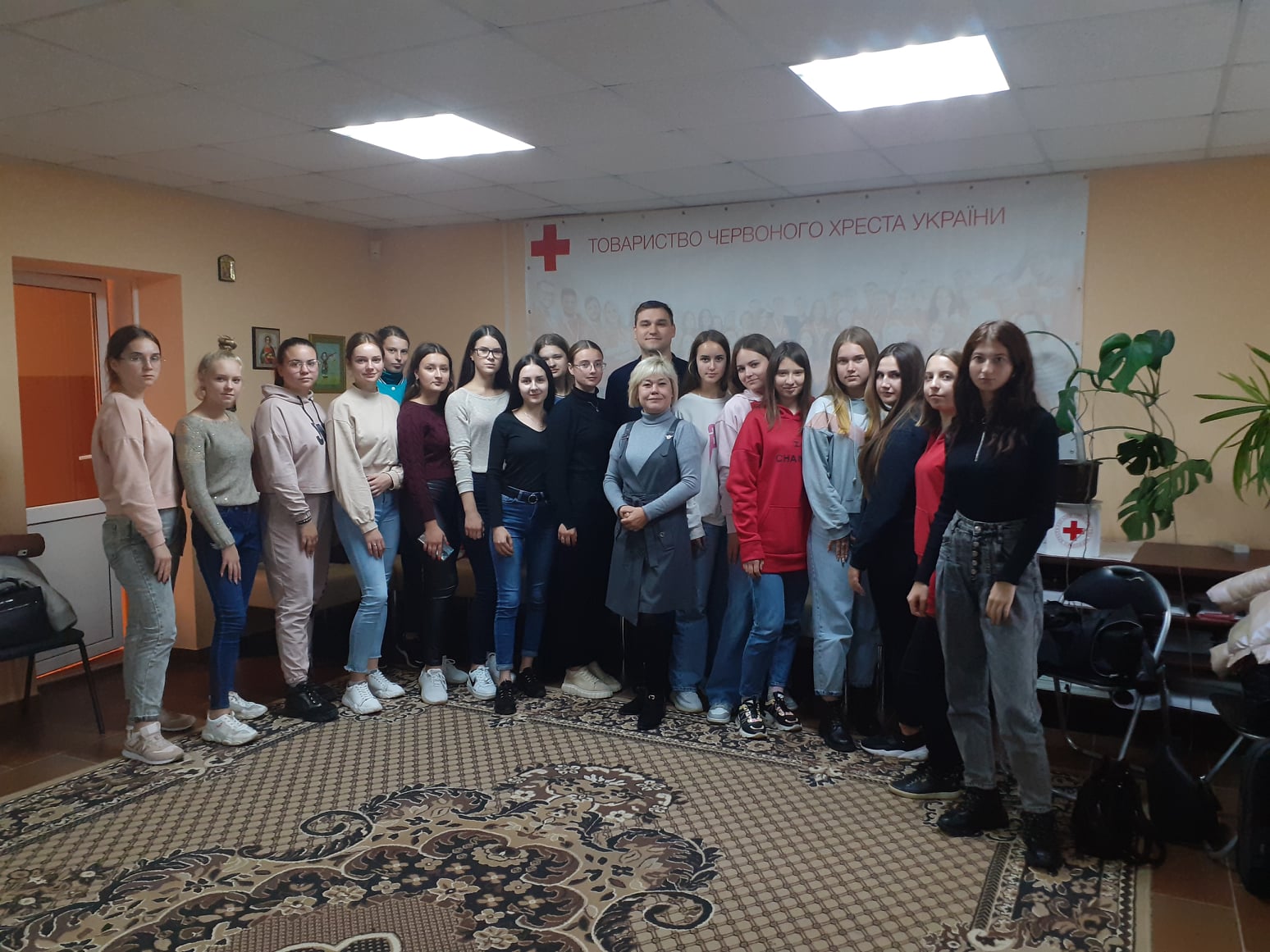 Навчальну екскурсію закладом провела в.о. голови Кареліна Наталія Володимирівна, яка ознайомила гостей з особливостями роботи Товариства і розвитку Червонохресного руху в Україні, поділилася досвідом важливої і нелегкої роботи волонтера, розповіла про досягнення і проблеми організації тощо.