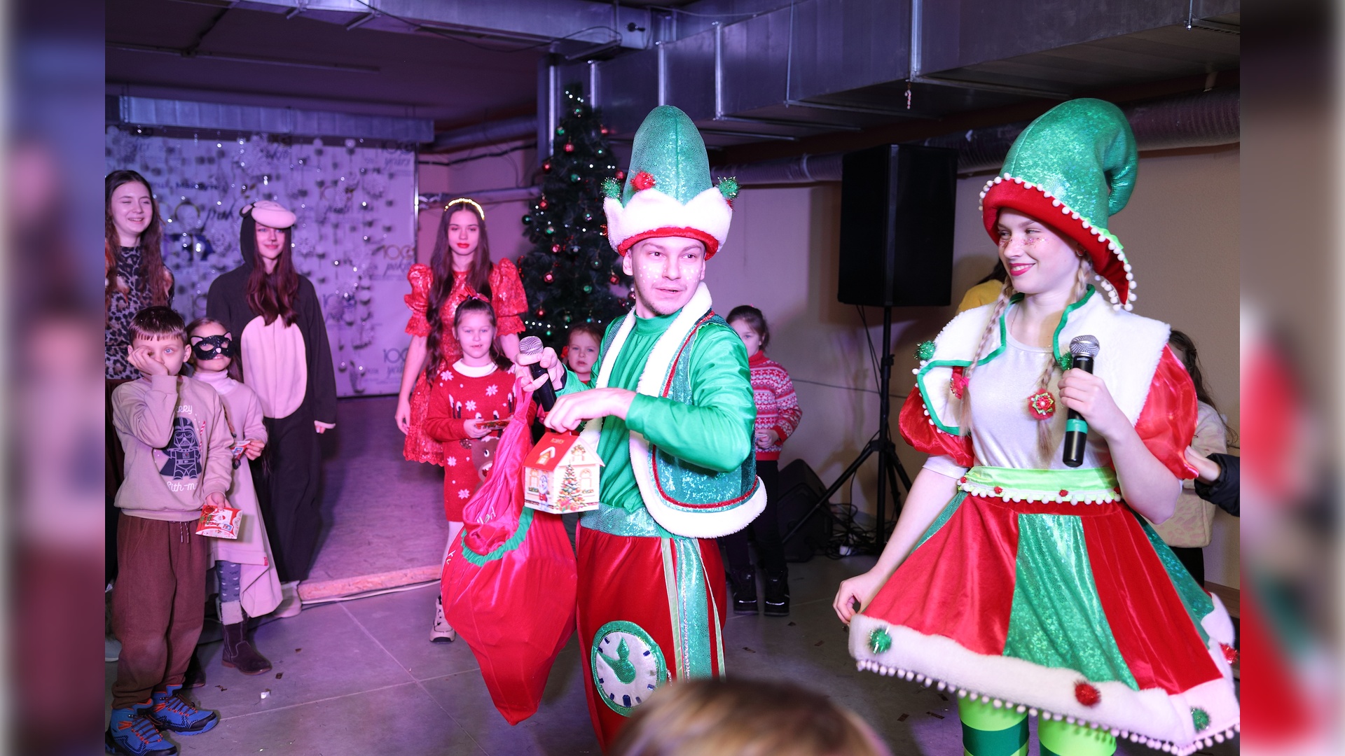 Для маленьких гостей підготували святкову виставу з казковими героями, веселими руханками, мильними бульбашками, конфеті та солодкими подарунками. Центральною подією свята стала постановка казки «У пошуках новорічної зірки або нові пригоди Крутсів». Студенти перевтілилися в казкових персонажів і активно залучали дітей до участі в інтерактивній казковій історії, роблячи їх невід'ємною частиною дійства.