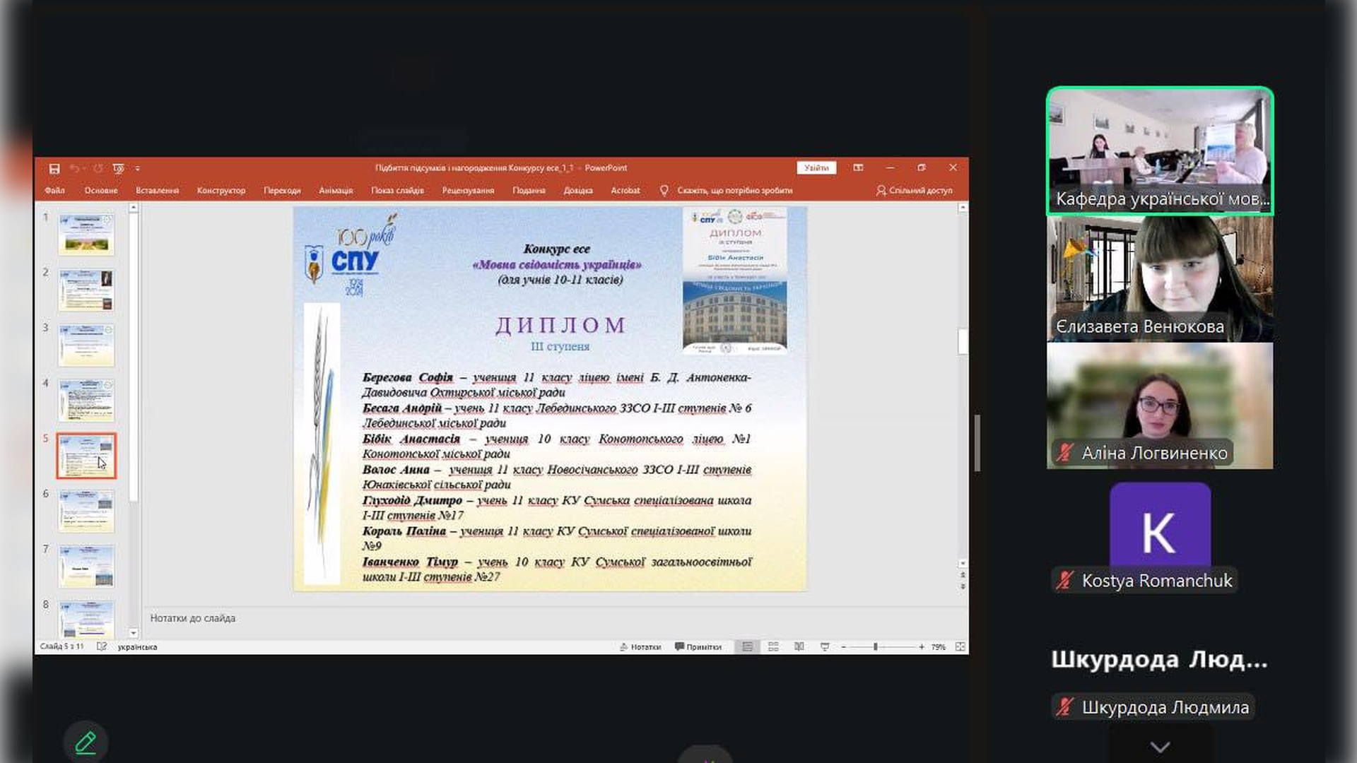 На конкурс було подано понад 30 робіт із Сумської, Київської та Львівської областей. Така широка географія підтверджує: тема мовної свідомості українців є не лише актуальною, а й по-справжньому об’єднуючою для молоді з різних куточків країни. Учні продемонстрували глибокий інтерес до формування власного мовного й культурного світогляду, що надихає та додає впевненості в майбутньому нашої країни.