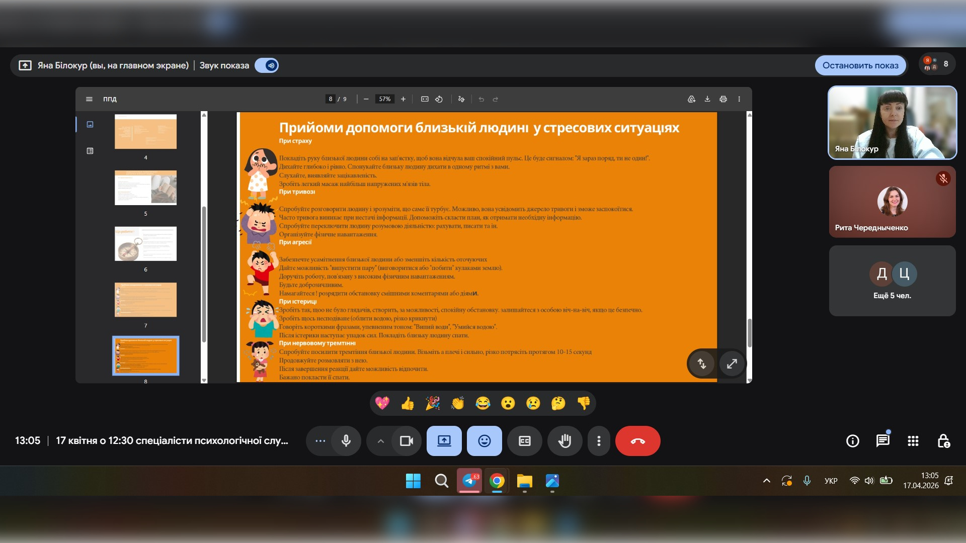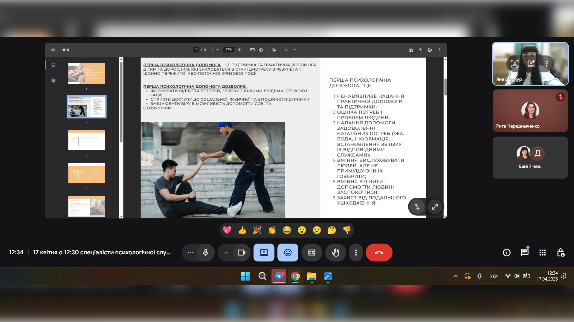 17 квітня спеціалістами Психологічної служби було проведено онлайн захід на тему: «Перша психологічна допомога», присвячений до Всесвітнього дня психолога.