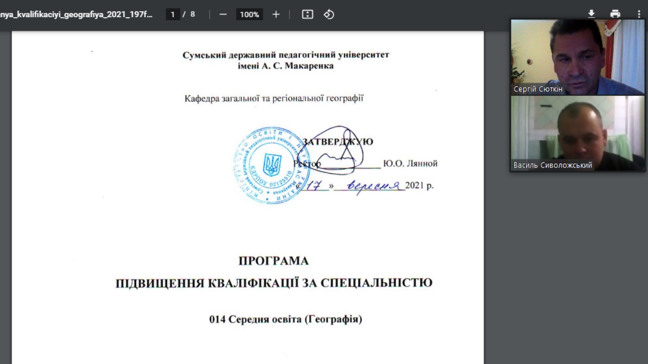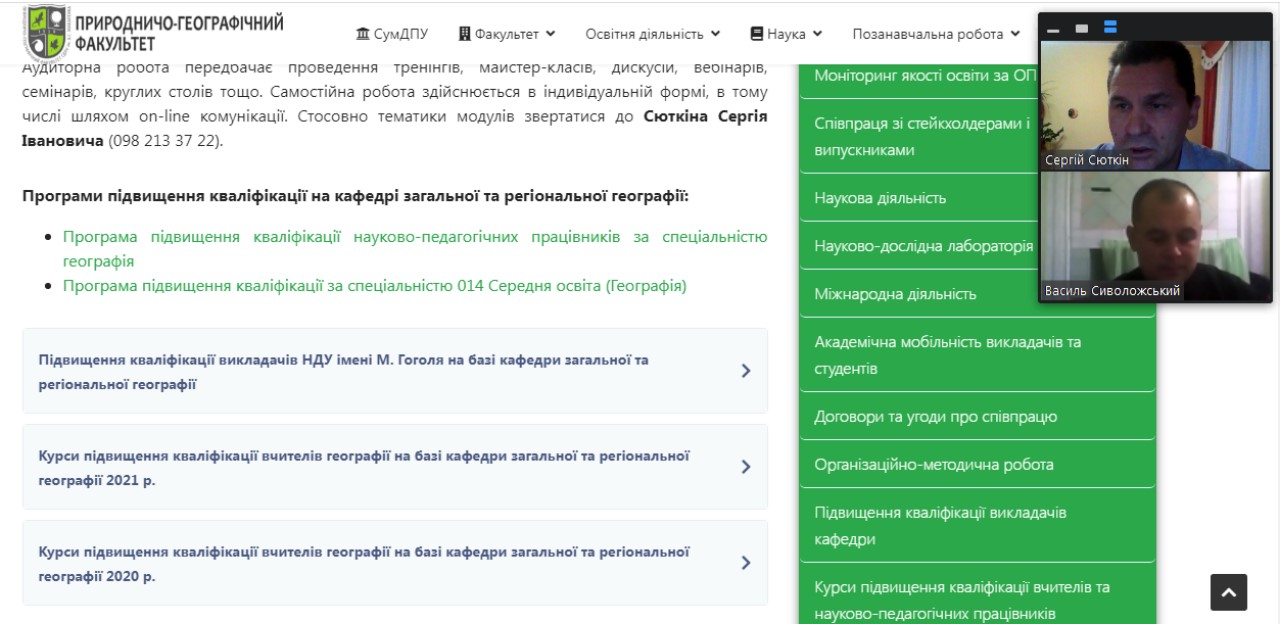 З початком нового 2021-2022 начального року відновилася й робота курсів підвищення кваліфікації вчителів на базі кафедри загальної та регіональної географії СумДПУ імені А.С. Макаренка.
