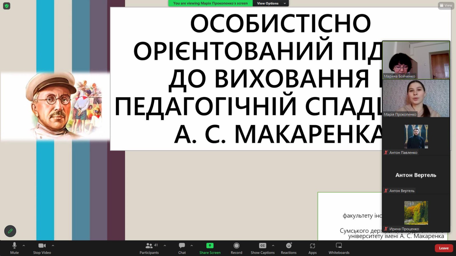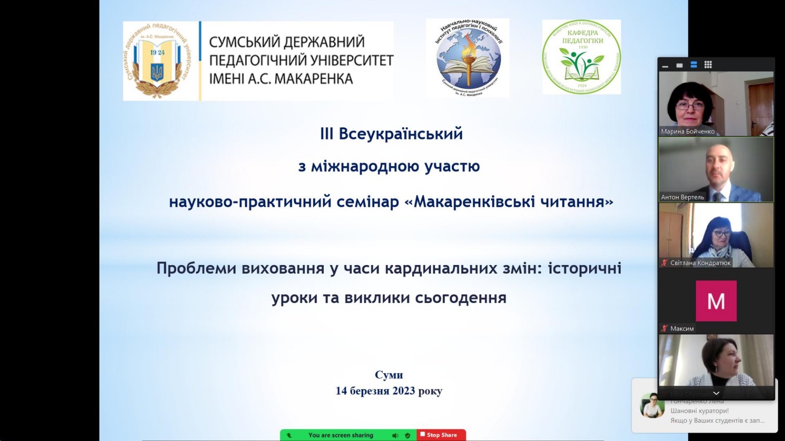 14 березня 2023 року в Сумському державному педагогічному університеті імені А.С. Макаренка відбувся IIІ Всеукраїнський науково-практичний семінар з міжнародною участю «Макаренківські читання» на тему «Проблеми виховання у часи кардинальних змін: історичні уроки та виклики сьогодення».