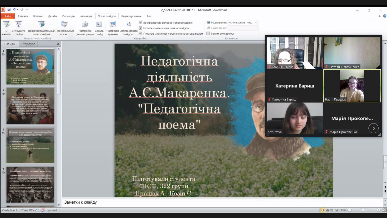 Науково-практичний захід проведено в рамках виконання колективної теми науково-дослідної роботи кафедри педагогіки. Мета наукового семінару: представлення та обговорення досвіду розв’язання проблем виховання дітей і молоді, підготовки кваліфікованих педагогів в умовах воєнного часу на основі дослідження педагогічного досвіду А.С. Макаренка.