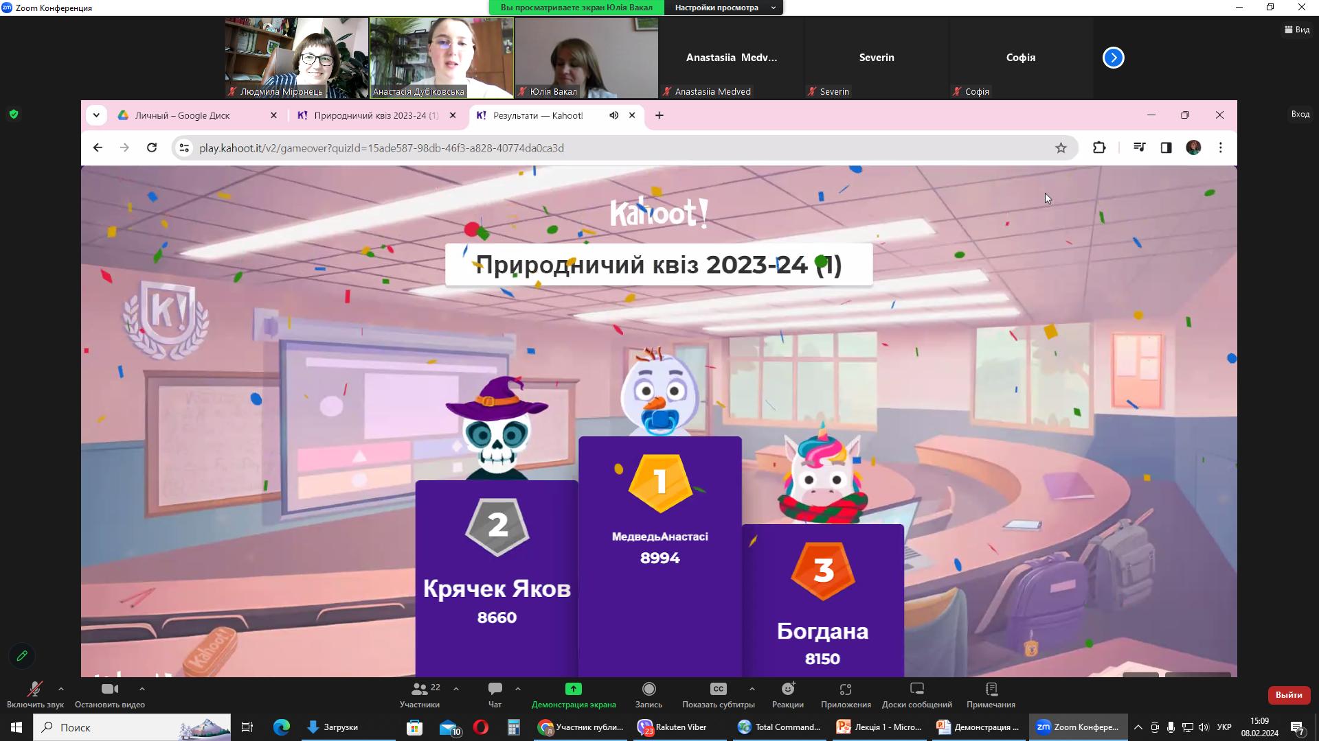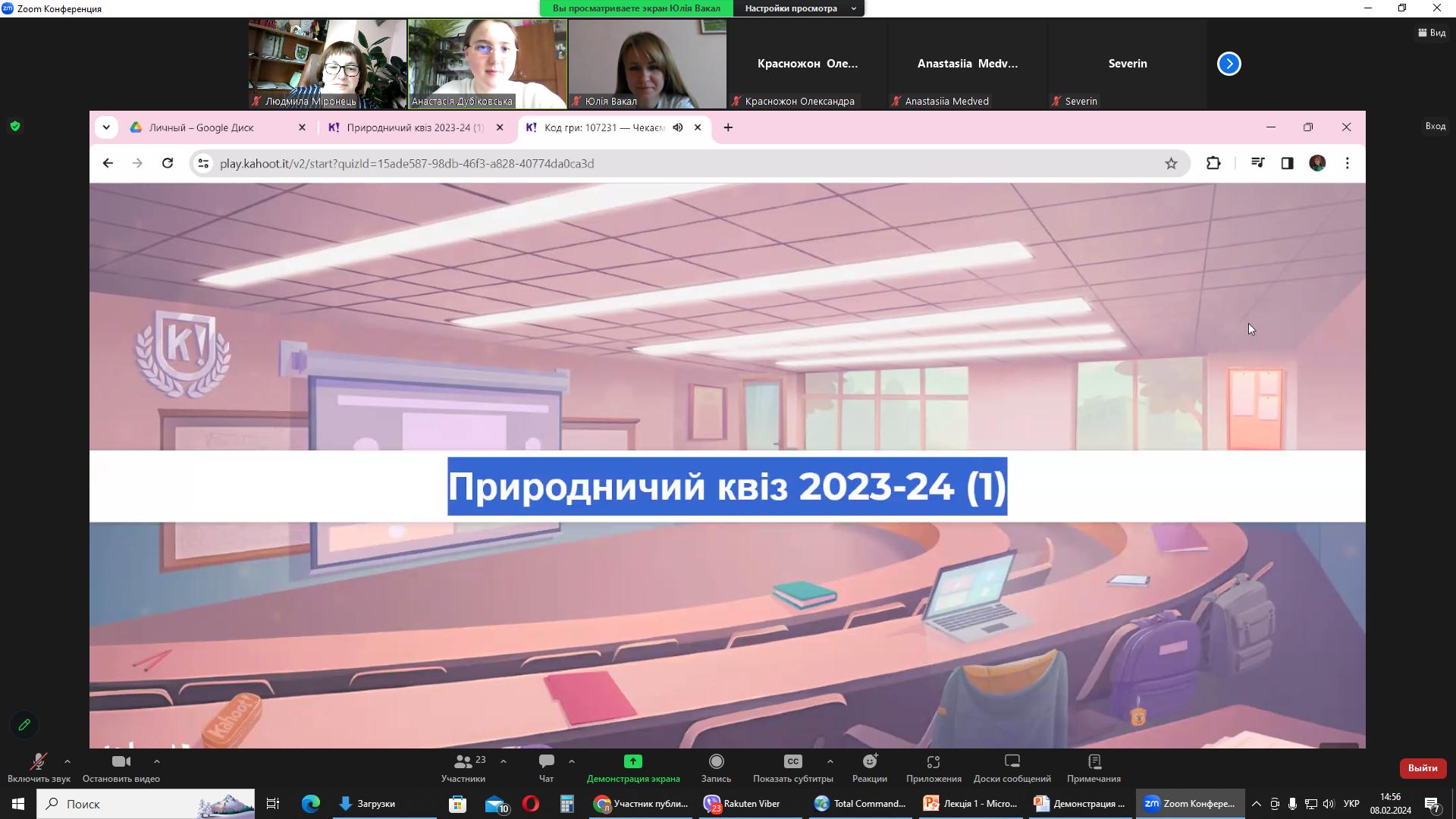 08.02.2023 року гра відбулася для учнів комунальної установи Сумська класична гімназія Сумської міської ради. Щиро вітаємо переможців гри та висловлюємо вдячність вчителю Валентині Іванівні Шестопал за високий рівень підготовки учнів та постійну співпрацю. Старшокласники також мали можливість познайомитися із спеціальностями природничо-географічного факультету СумДПУ імені А.С. Макаренка та, в подальшому, доєднатися до нашої родини природничо-географічного факультету. Всі учасники отримали сертифікати за участь, переможці – дипломи за зайняте 1, 2 та 3 місце.