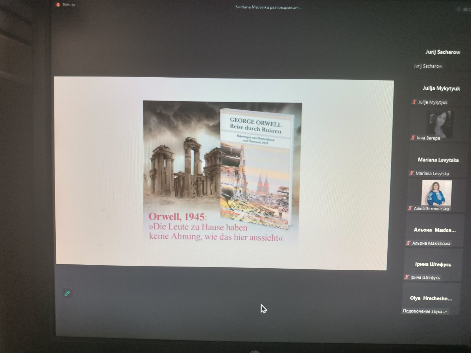 Лекція цікава, логічно вибудувана, змістовна, наповнена численними ілюстраціями з сучасних реалій російсько-української війни. Промовисті, концептуально місткі матеріали сприяли налагодженню емоційного контакту між лекторкою та аудиторією (попри те, що лекція відбувалася на платформі Zoom). Порушені питання викликали у студентів нашого університету науковий інтерес, що, безперечно, в перспективі зорієнтує молодь у просторі актуальної наукової проблематики.