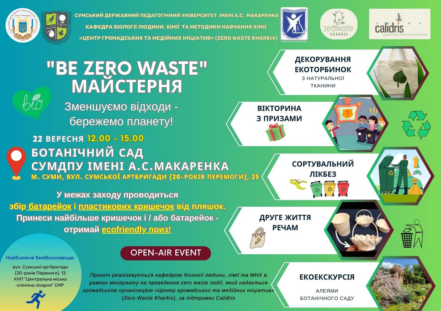 У номінації “Кращий проєкт з громадянської освіти” перше місце було присуджено проєкту “Be Zero Waste - майстерня”, реалізованому кафедрою біології людини, хімії та методики навчання хімії СумДПУ імені А.С.Макаренка у рамках гранту ГО “Центр громадських та медійних ініціатив” (Zero Waste Kharkiv) за підтримки Calidris та інформаційної підтримки Міністерства освіти і науки України та Міністерства захисту довкілля та природних ресурсів.