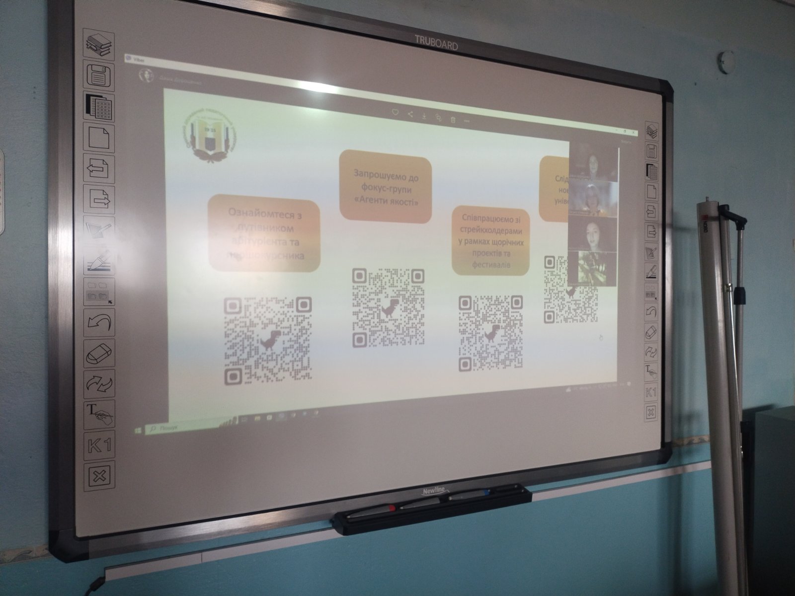 Студенти-філологи групи УМ-5 Сумського державного педагогічного університету імені А.С.Макаренка Дарья Мойсеенко, Оксана Устименко, Наталья Требухова, Дар'я Дорошенко провели профорієнтаційний захід і віруальну екскурсію нашим університетом, факультетом, кафедрою для учнів Старосільського ліцею Сумського району Сумської області.