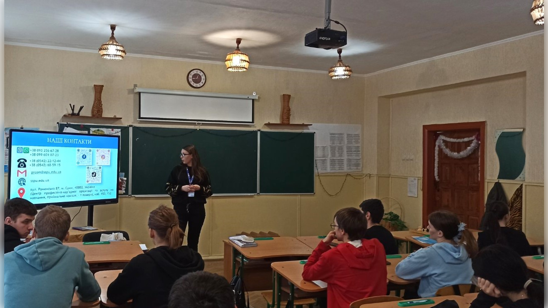 Під час зустрічей фахівець Центру презентувала основні спеціальності університету, розповіла про сучасні підходи до підготовки педагогічних фахівців, міжнародні програми, академічну мобільність та умови практичної підготовки студентів. Окрему увагу було приділено питанням вступної кампанії, переліку необхідних сертифікатів НМТ, можливостям пільгового вступу та особливостям подачі електронних заяв. Представниця університету підкреслила відкритість СумДПУ до співпраці, а також готовність надавати консультативний супровід на всіх етапах вступної кампанії.