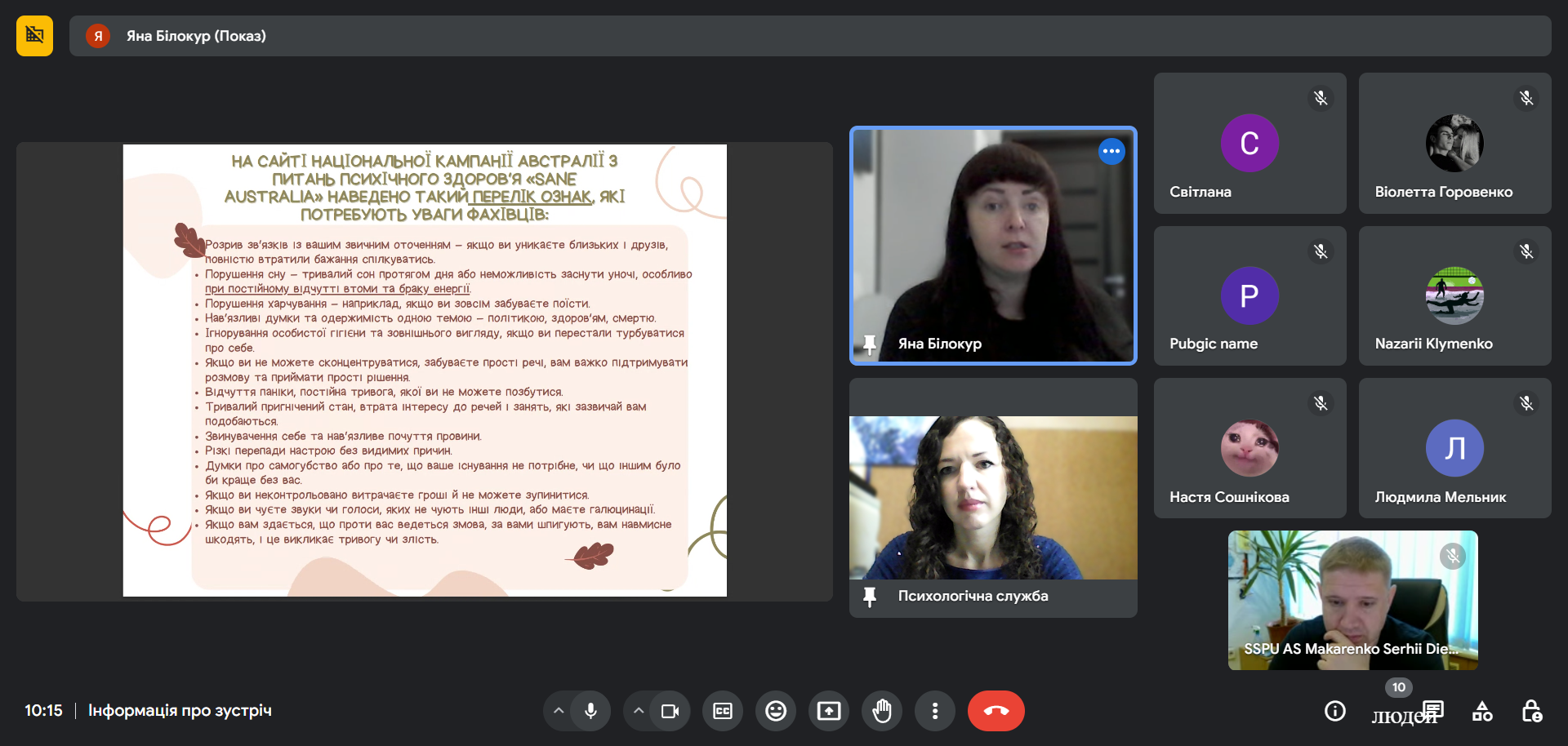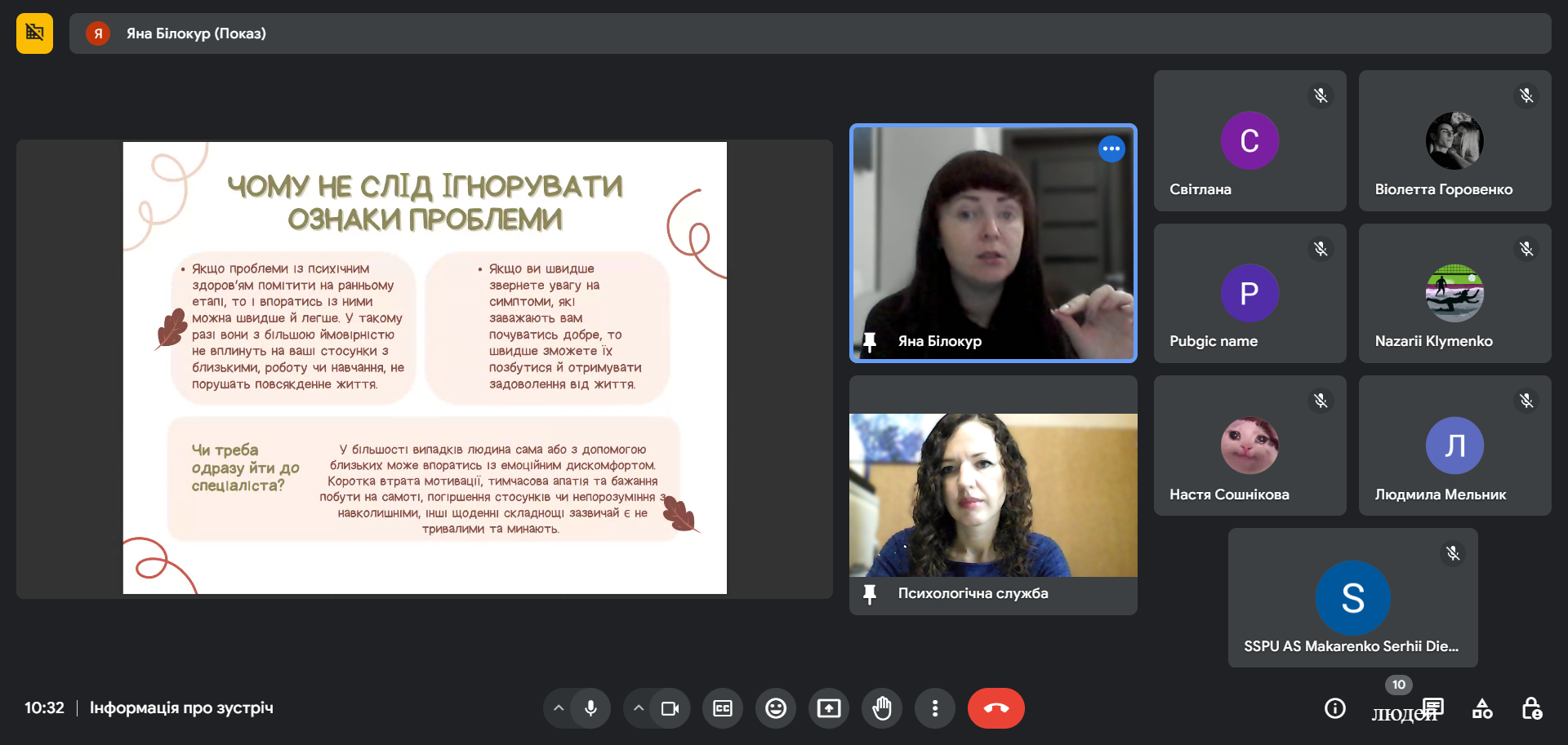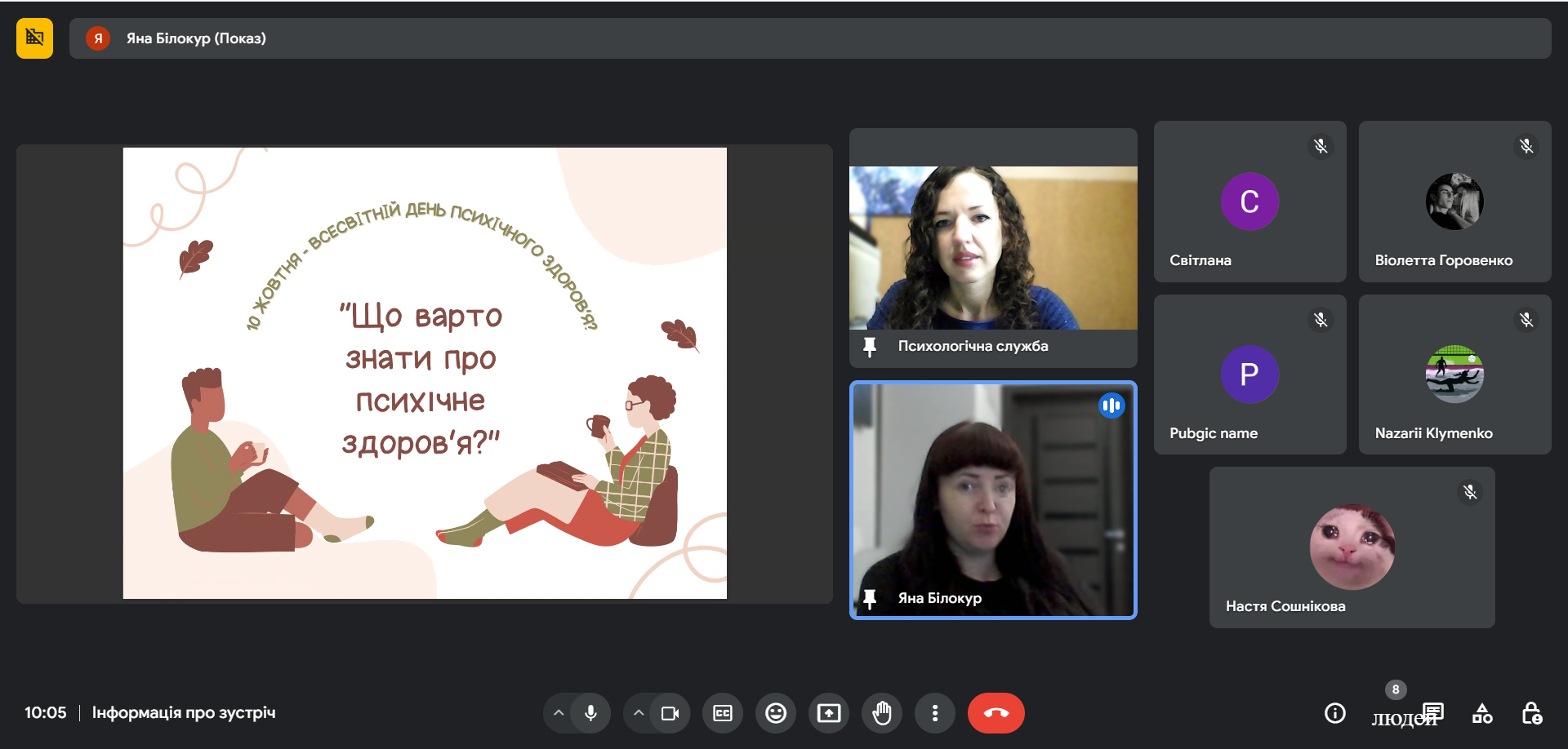 Фахівці психологічної служби, на передодні Всесвітнього дня психічного здоров’я 8 та 9 жовтня провели онлайн-заходи на тему: «Що варто знати про психічне здоров’я ?» для першої та другої зміни навчання.
