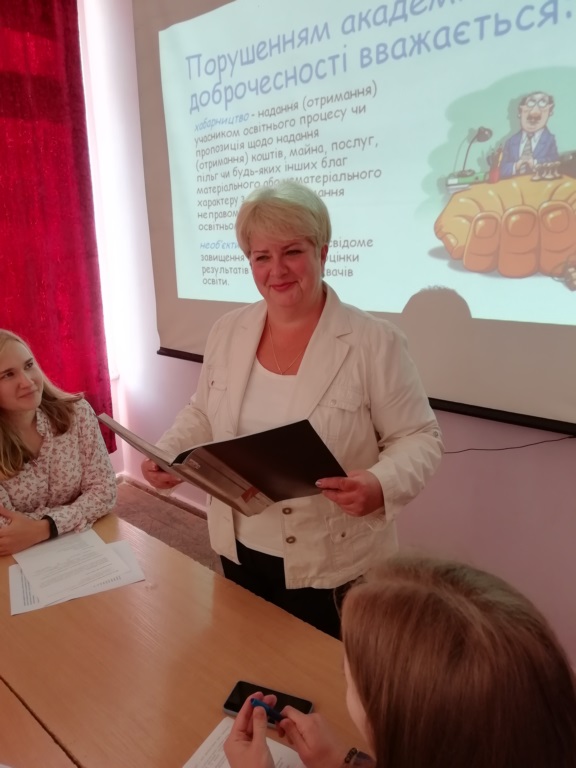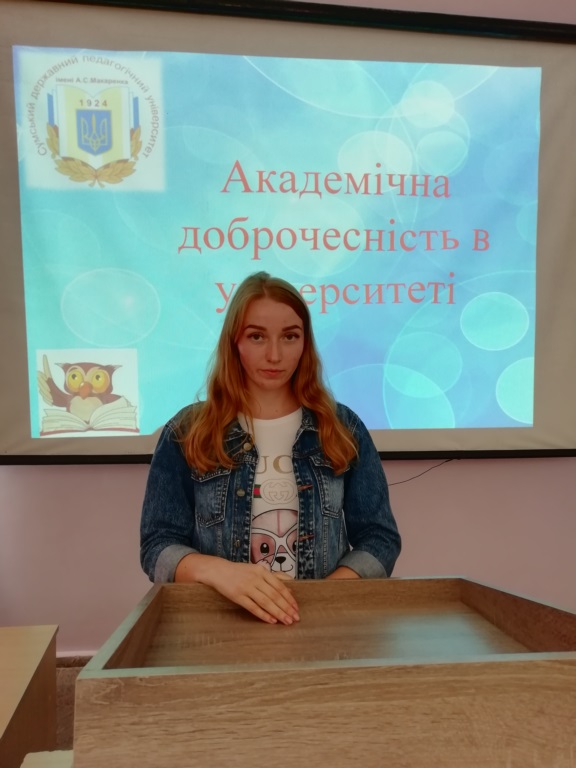 Під час семінару студентами було проаналізовано державні документи, положення про систему забезпечення академічної доброчесності у освітньо-науковій діяльності СумДПУ імені А.С. Макаренка та опрацьовано кодекс академічної доброчесності.