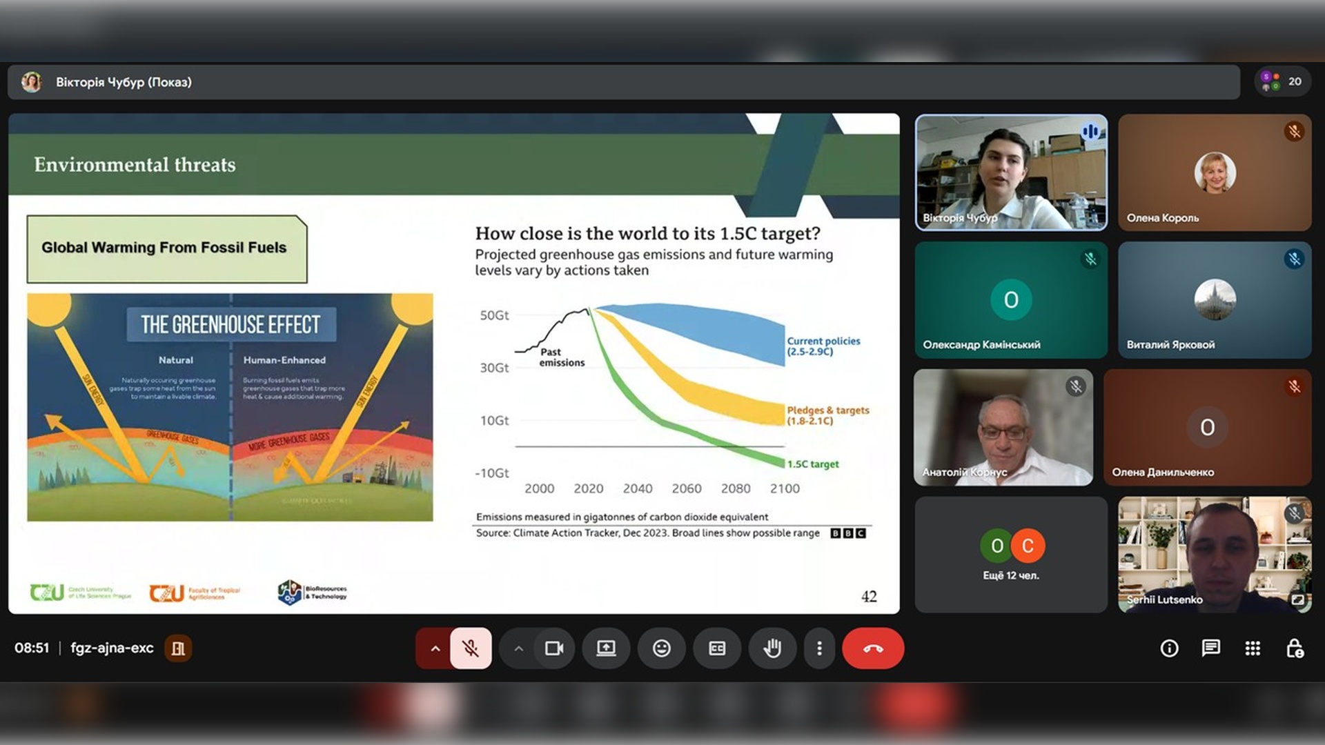 Під час лекції було ґрунтовно розглянуто основні етапи проєктування природно-технічних систем та інтеграції сталої біотехнології та екологічної інженерії на прикладі перероблення (рециклінгу) органічних відходів та використання утвореного біогазу, як альтернативного джерела енергії. Вікторія Сергіївна детально розповіла де використовують біотехнології, навела реальні приклади Чехії та країн ЄС, закцентувала увагу на важливості біоремедіації забруднених ґрунтів. Лекторка розповіла про основні глобальні екологічні проблеми такі як: парниковий ефект, розповсюдження відходів в геосферах, втрата біорізноманіття, опустелювання територій, промислове забруднення, підкислення світового океану та глобальне забруднення атмосферного повітря. На прикінці лекції Вікторія Чубур розповіла про Environmental Engineering (Екологічну інженерію), що дозволяє значно зменшити тиск та негативні наслідки антропогенної діяльності на навколишнє природне середовище.
