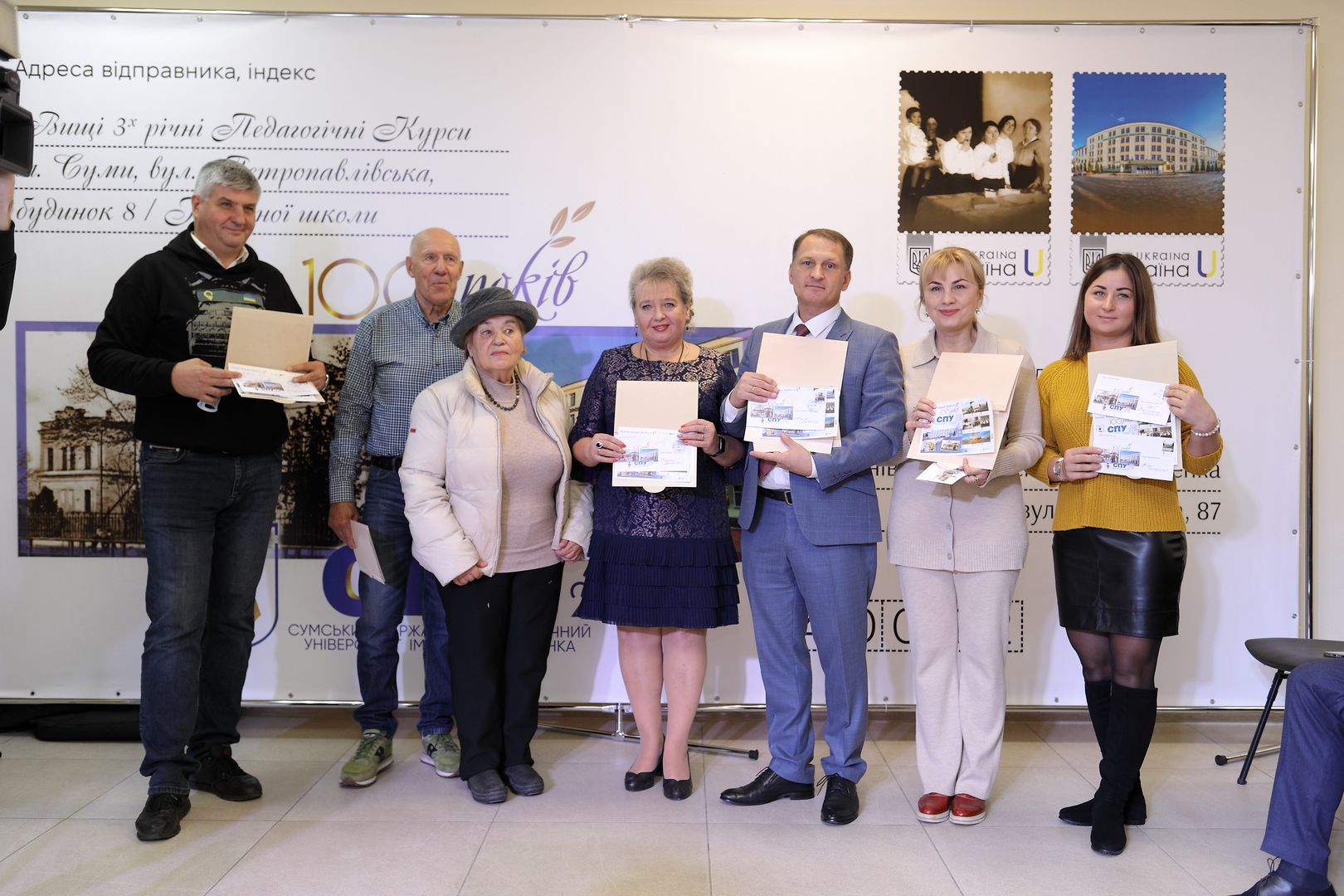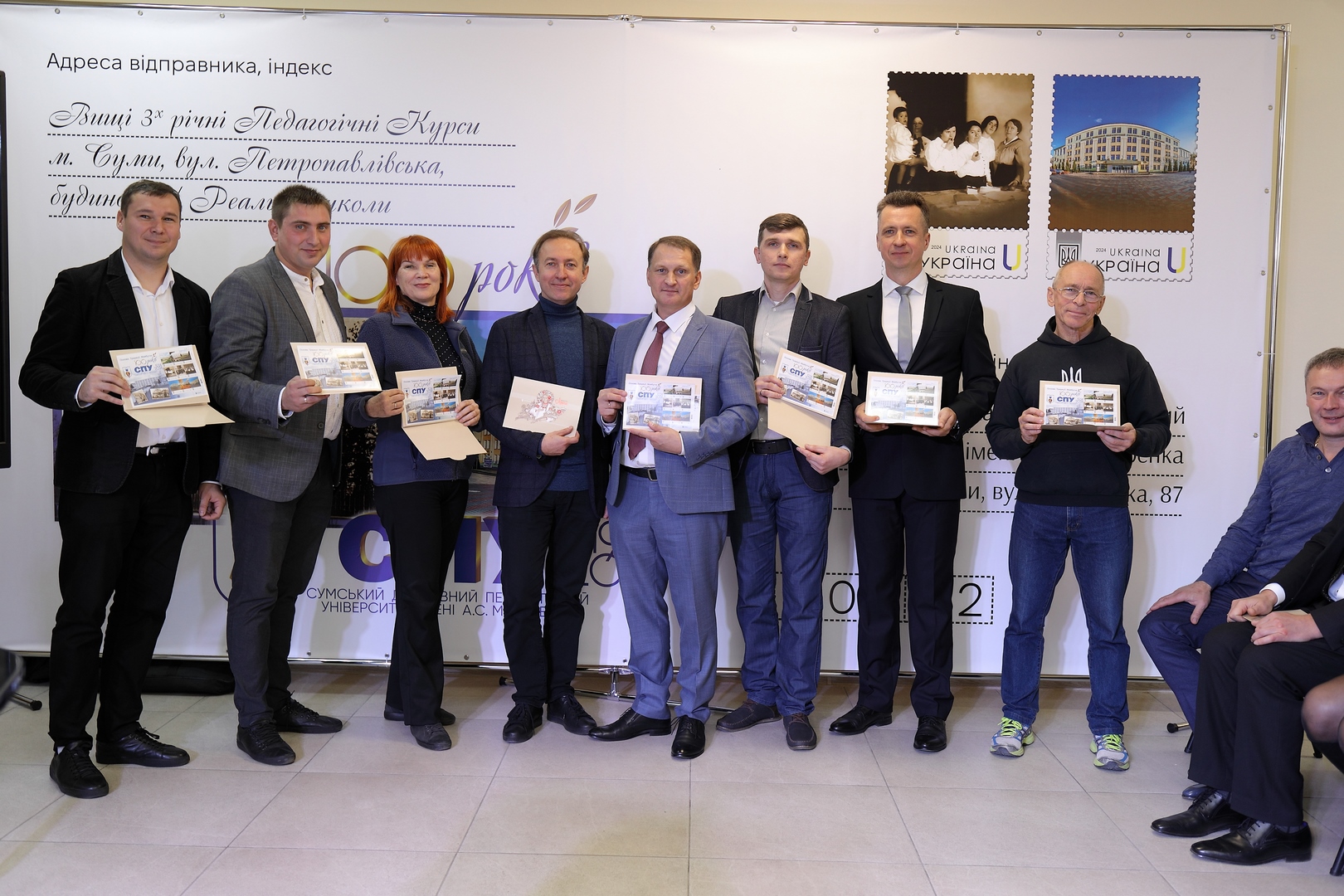 Перед безпосередньою процедурою погашення присутні мали змогу дізнатися про ідею розробки дизайну марки та деякі цікаві історичні моменти з життя університету, про які стало відомо нещодавно, від ректора професора Юрія Лянного, який наголосив на тому, що дана зустріч є логічним початком серії іміджевих заходів, присвячених 100-річчю СумДПУ.