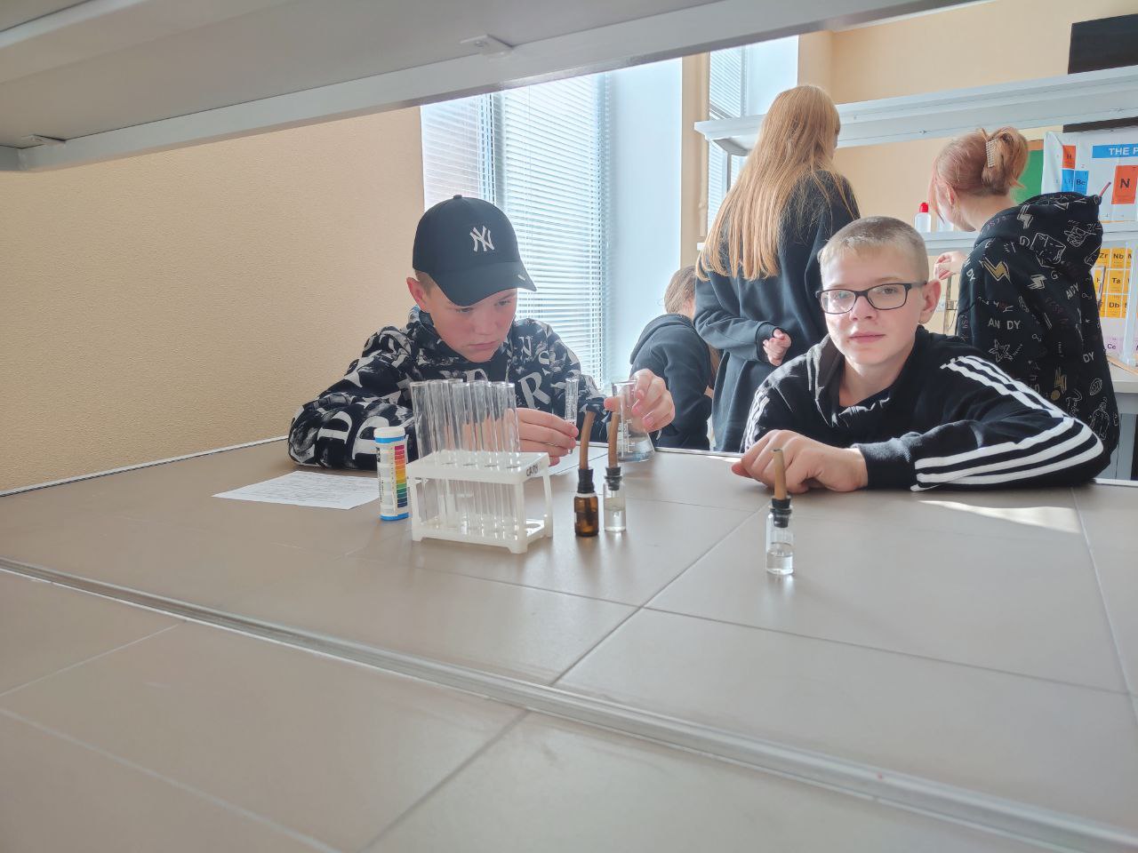 Завідувачка кафедри біології людини, хімії та методики навчання хімії Бабенко О.М. провела заняття на тему «Чиста вода: дослідницька майстерня». Його мета - розгляд проблеми якості води та впливу людської діяльності на природні водойми. Учні склали кульо-стрижневі моделі молекул води та проаналізували явище міжмолекулярних водневих зв’язків. У ході бесіди було розглянуто основні джерела забруднення водойм, включаючи природні та антропогенні фактори, переконались у важливості збереження чистоти води та відповідального використання водних ресурсів. Справжнє захоплення викликала можливість самостійно визначення вмісту деяких катіонів і аніонів у питній воді, використовуючи обладнання та реактиви хімічної лабораторії.