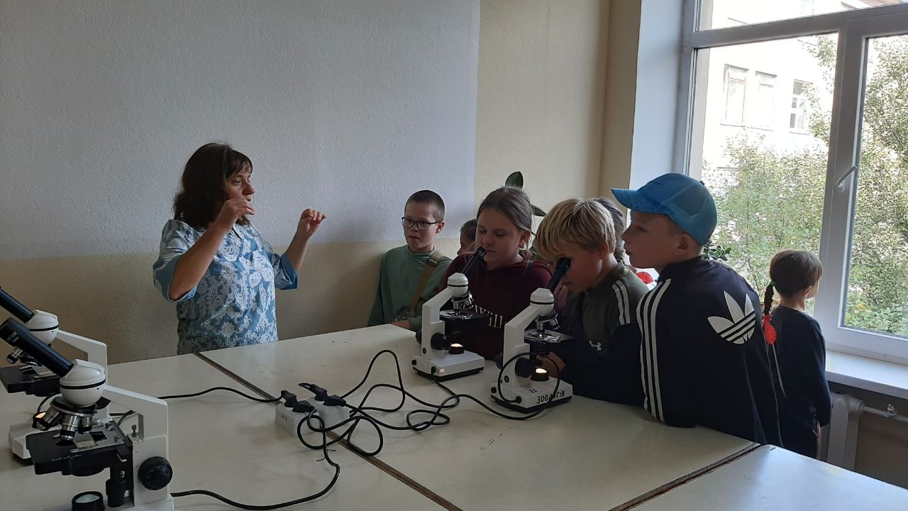Учням була надана можливість попрацювати із сучасними мікроскопами кафедри біології та методики навчання біології. Під час цієї роботи вони мали змогу познайомитися з живими культурами одноклітинних організмів, внутрішньою будовою грибів та деяких органів вищих рослин. Наприкінці роботи, учні разом із лаборантами Кафедри отримали можливість створити свій тимчасовий мікропрепарат.