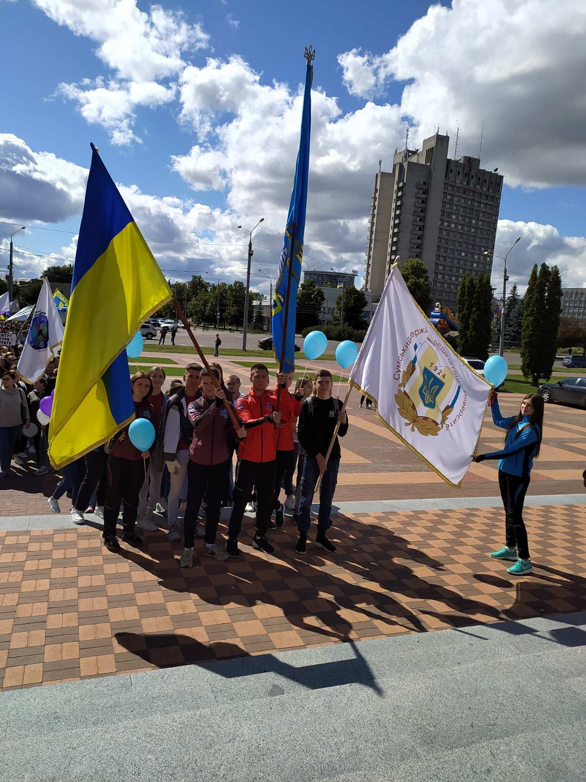 Понад триста представників чотирьох закладів вищої освіти (СумДУ, СНАУ, СумДПУ імені А. С. Макаренка, Сумської філії ХНУВС) пройшли ходою від вул. Петропавлівська до МЦ «Романтика», де і відбувся фестиваль. Розпочали його виконанням молодіжного гімну, а потому провели церемонію вшанування кращих представників молоді міста, серед яких і студенти нашого університету.