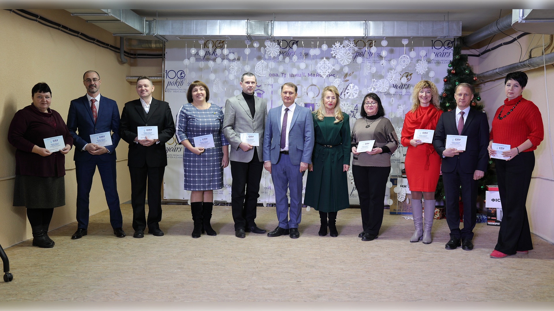 З щирим вітальним словом до колективу звернувся ректор університету, професор Юрій ЛЯННОЙ. У промові він підбив підсумки року, що минає, наголосив на здобутках університету, досягнутих попри складні виклики сьогодення, та висловив глибоку подяку Збройним Силам України за можливість жити й працювати. Після цього відбулося нагородження викладачів і працівників закладу вищої освіти почесними грамотами та відзнаками різних рівнів. До привітань приєдналися проректори університету, а перший проректор, доцент Ганна ЗАІКІНА вручила дипломи переможцям та призерам осінньо-зимової серії пізнавальних онлайн-квестів серед команд факультетів.